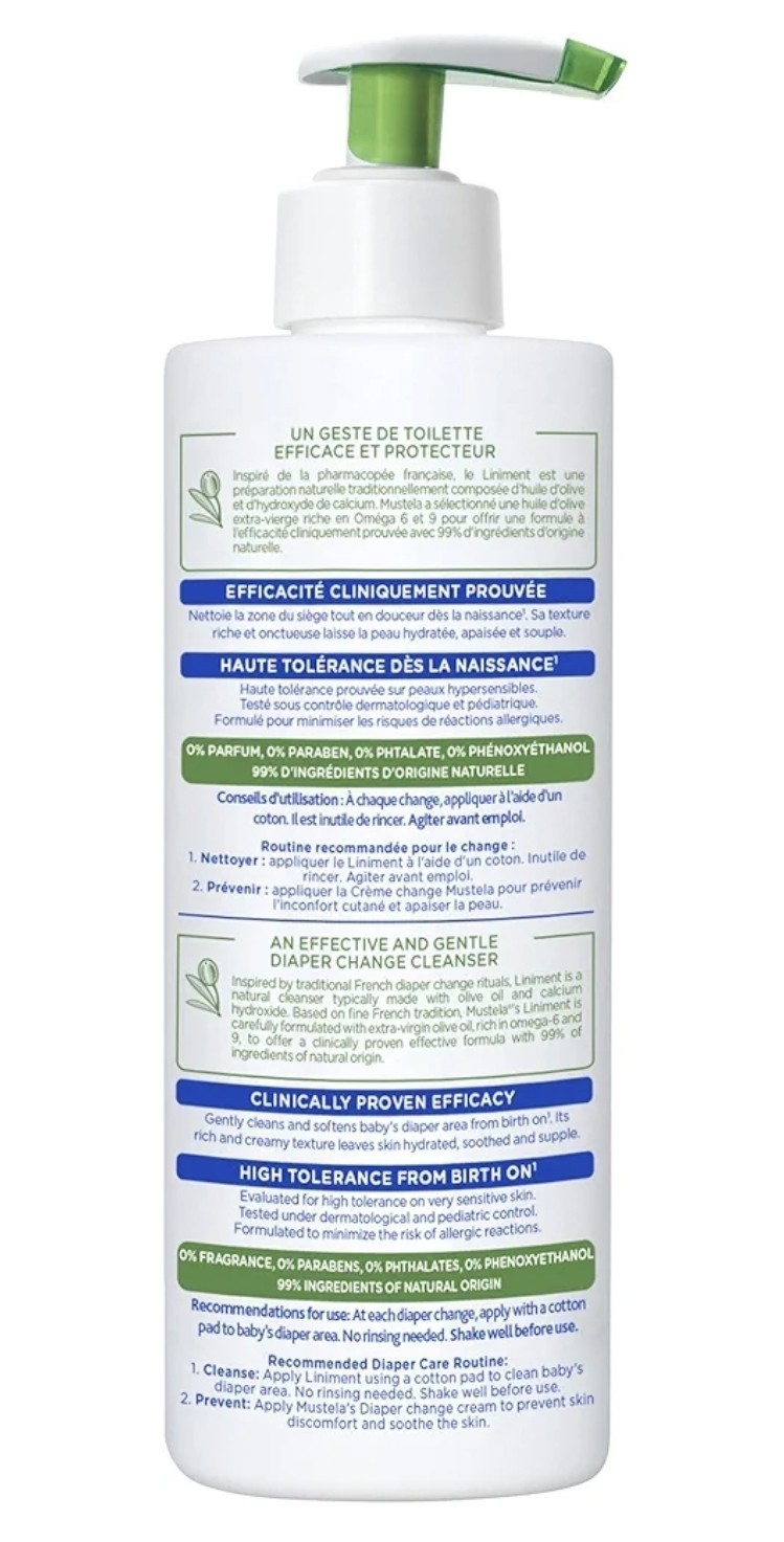 как выглядит Mustela Liniment Diaper Change Cleanser with Extra Virgin Olive Oil Baby 400mL фото