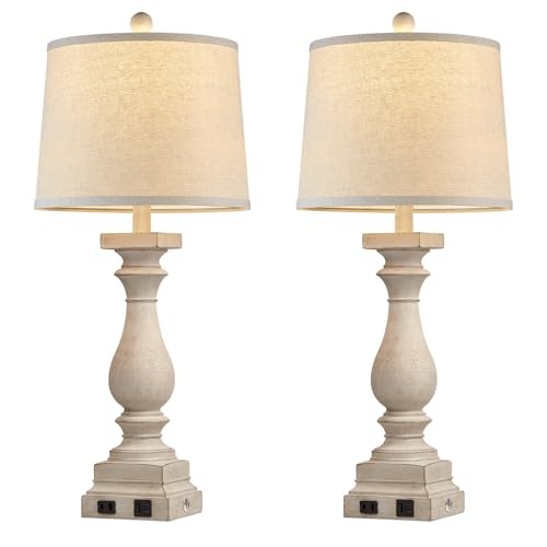 28 Tall Farmhouse Table Lamps Set of 2 with USB C A Ports and AC Beige-2 Pack