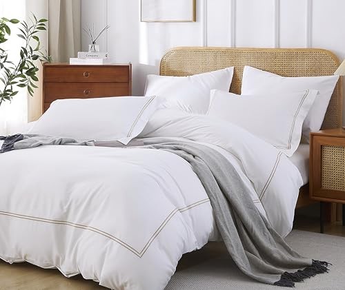 100 Cotton Duvet Cover Set Soft Comfortable with Embroidery Design 3 Pcs King