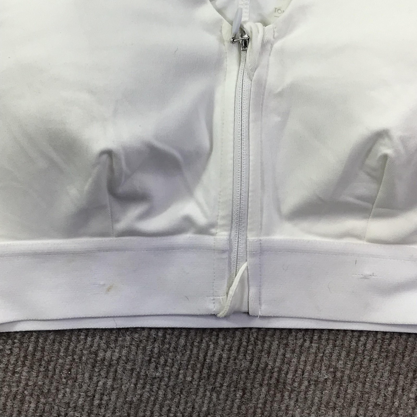 Tommie Copper Sports Bra Womens Large White Zip Front Support Mesh Znergy