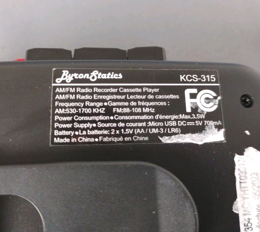 Byron Statics Portable Cassette Player Recorder FM AM Radio KCS-315 Black Works