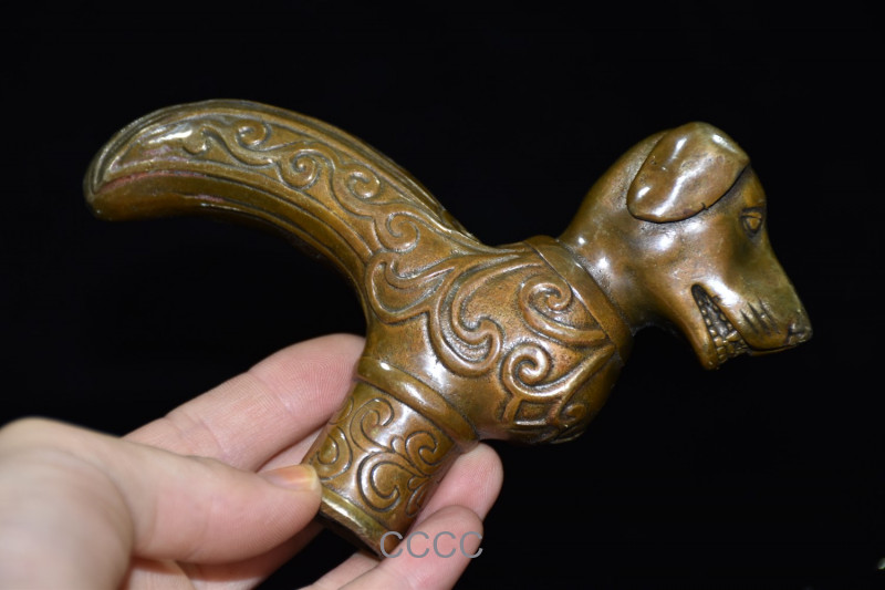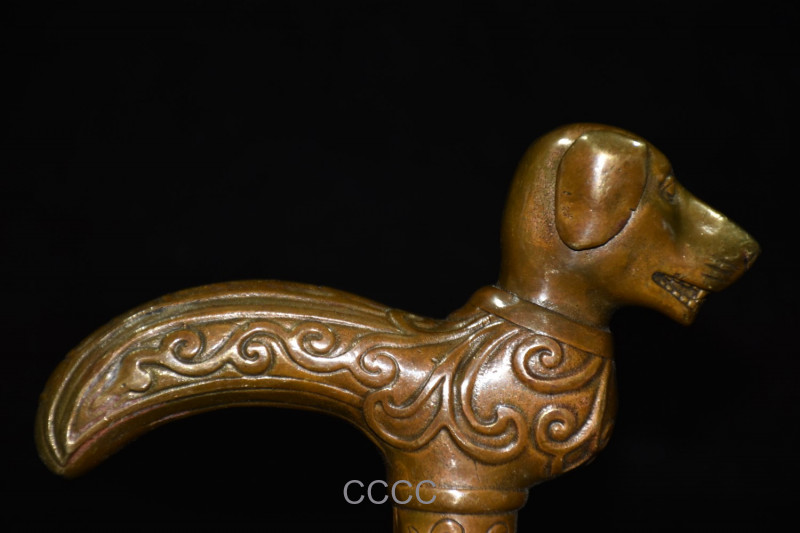 как выглядит Rare Chinese Retro Bronze Zodiac Dog Cane Walking Stick Head Handle Accessories фото