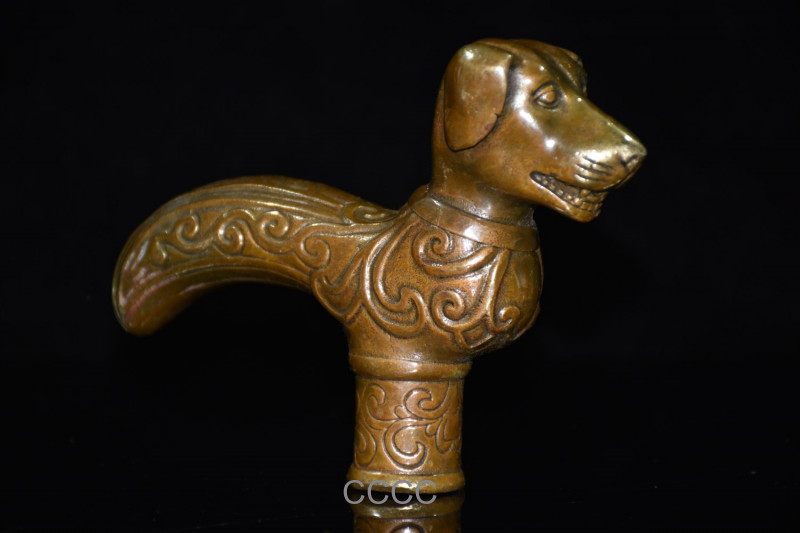 • Rare Chinese Retro Bronze Zodiac Dog Cane Walking Stick Head Handle Accessories