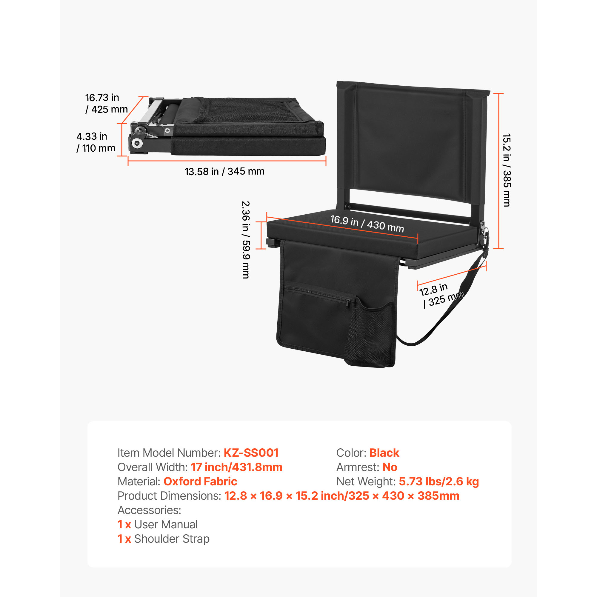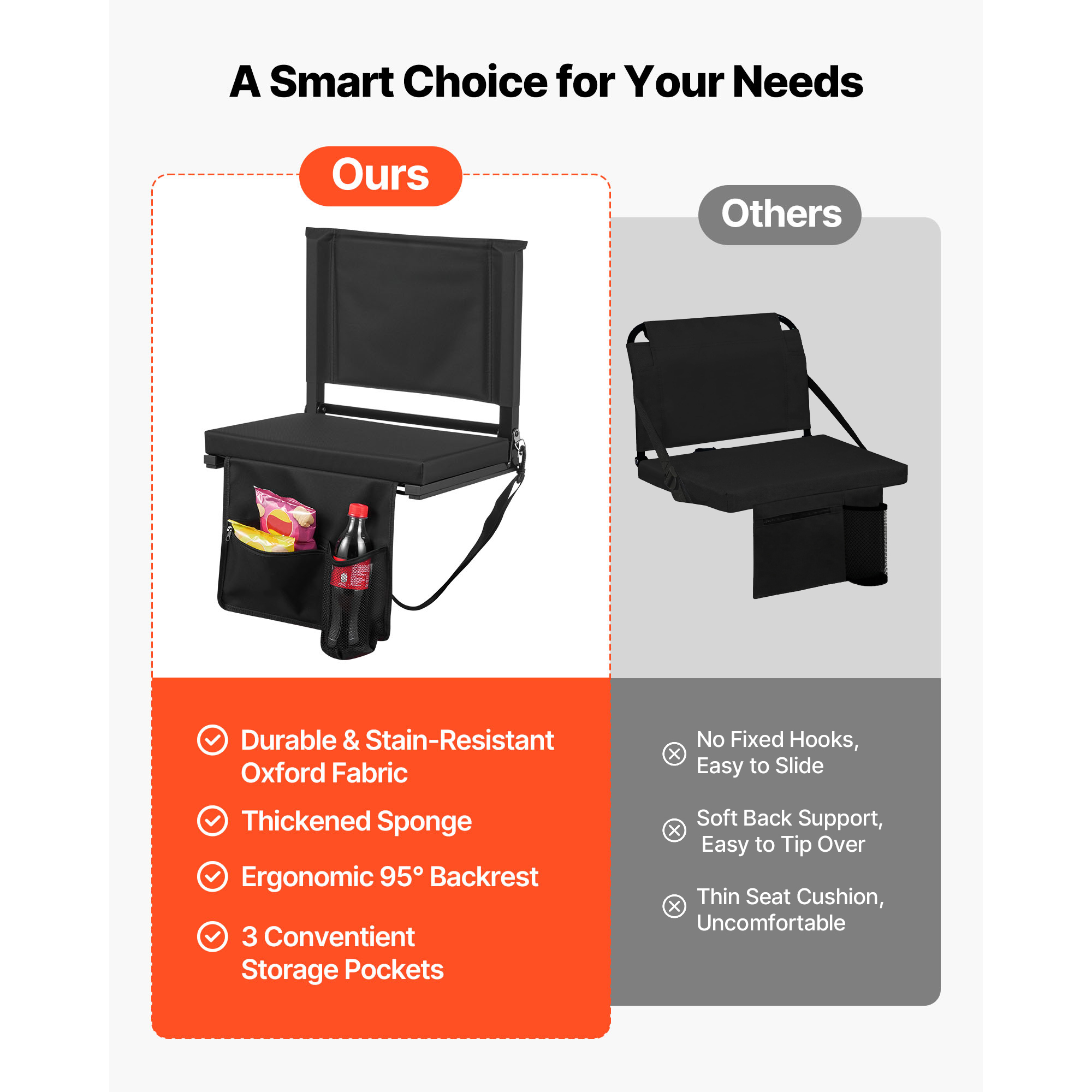 Uimoso Folding Bleacher Chair Seat with Backrest and Comfortable Cushion Stadium