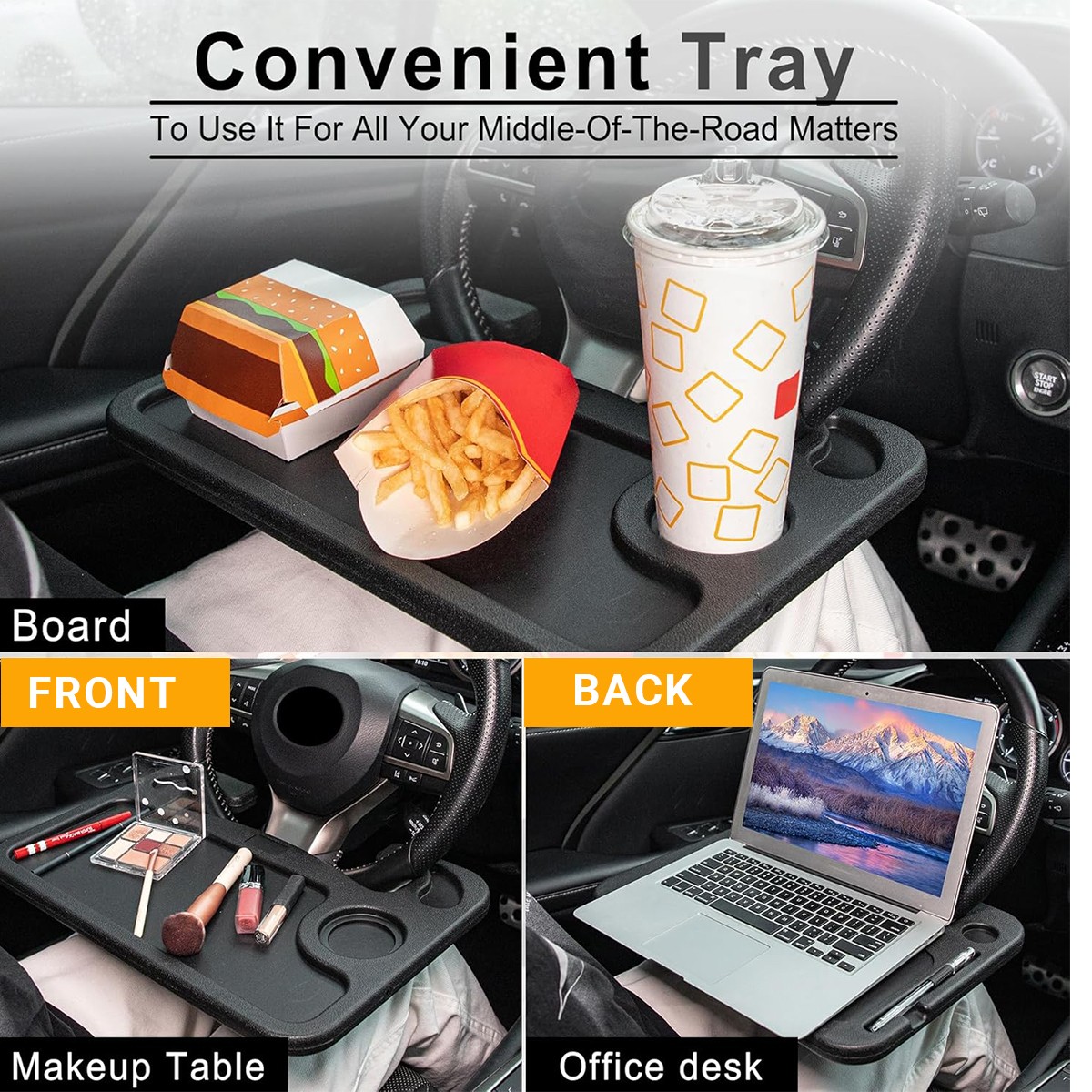 New Car Steering Wheel Tray Desk 2 Sided For Laptop Drink Food Work Table Holder
