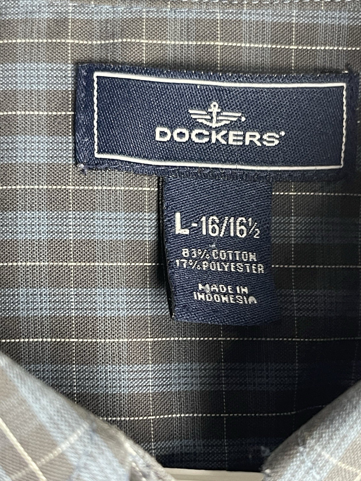 Mens DOCKERS Long Sleeve Button Down Blue Plaid Shirt, L 16-16 1/2