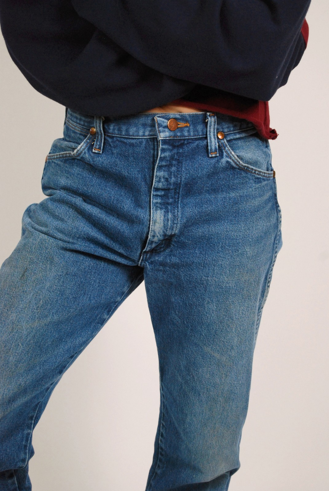 как выглядит 2000s Wrangler Jeans 28 blue denim vintage high waisted raw hem made in usa фото