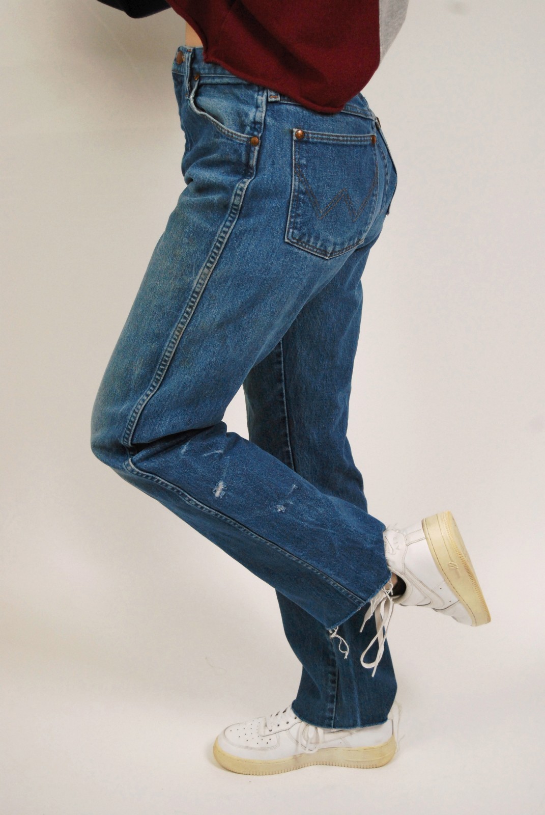 2000s Wrangler Jeans 28 blue denim vintage high waisted raw hem made in usa