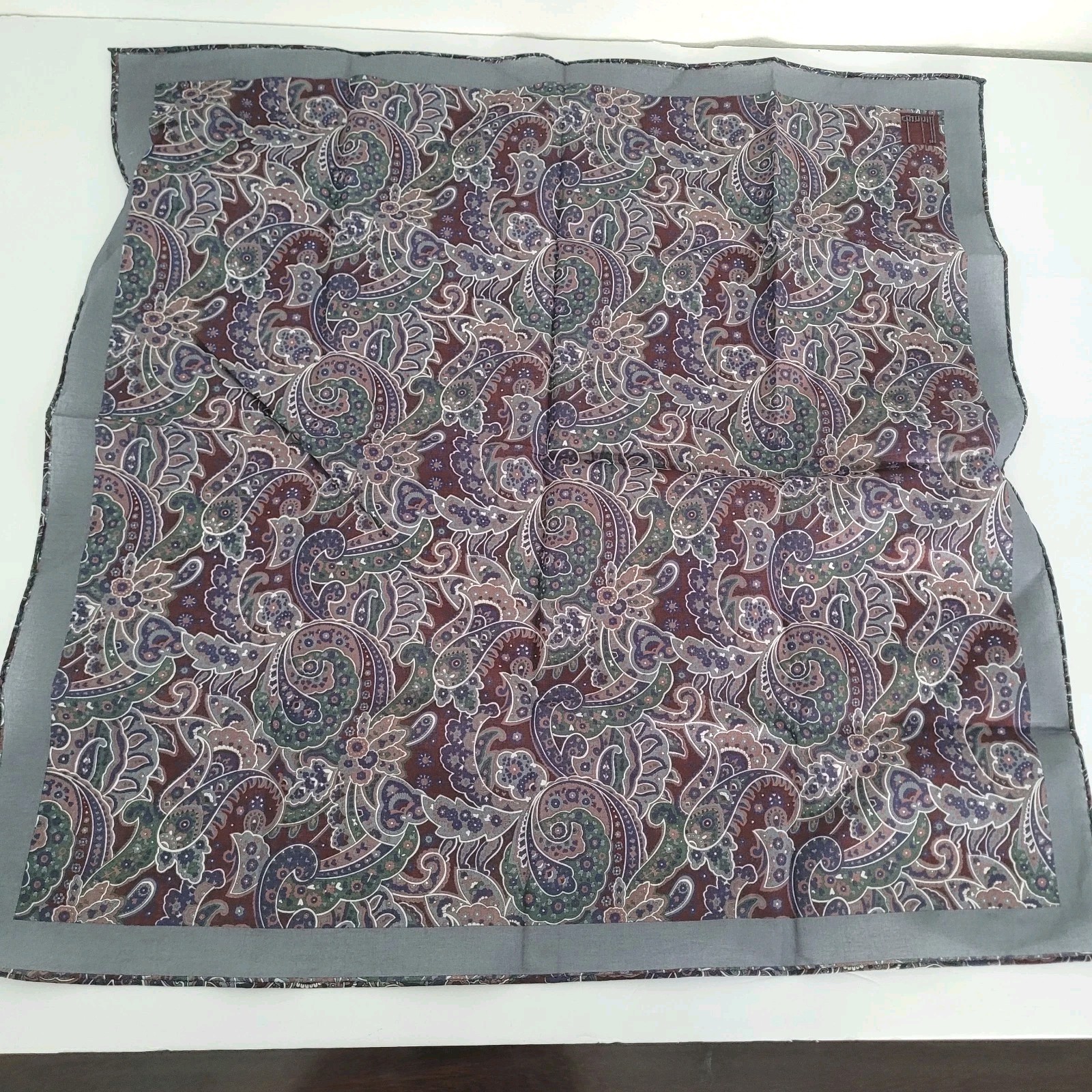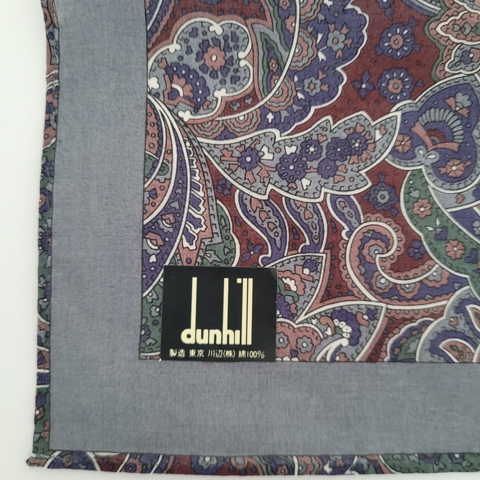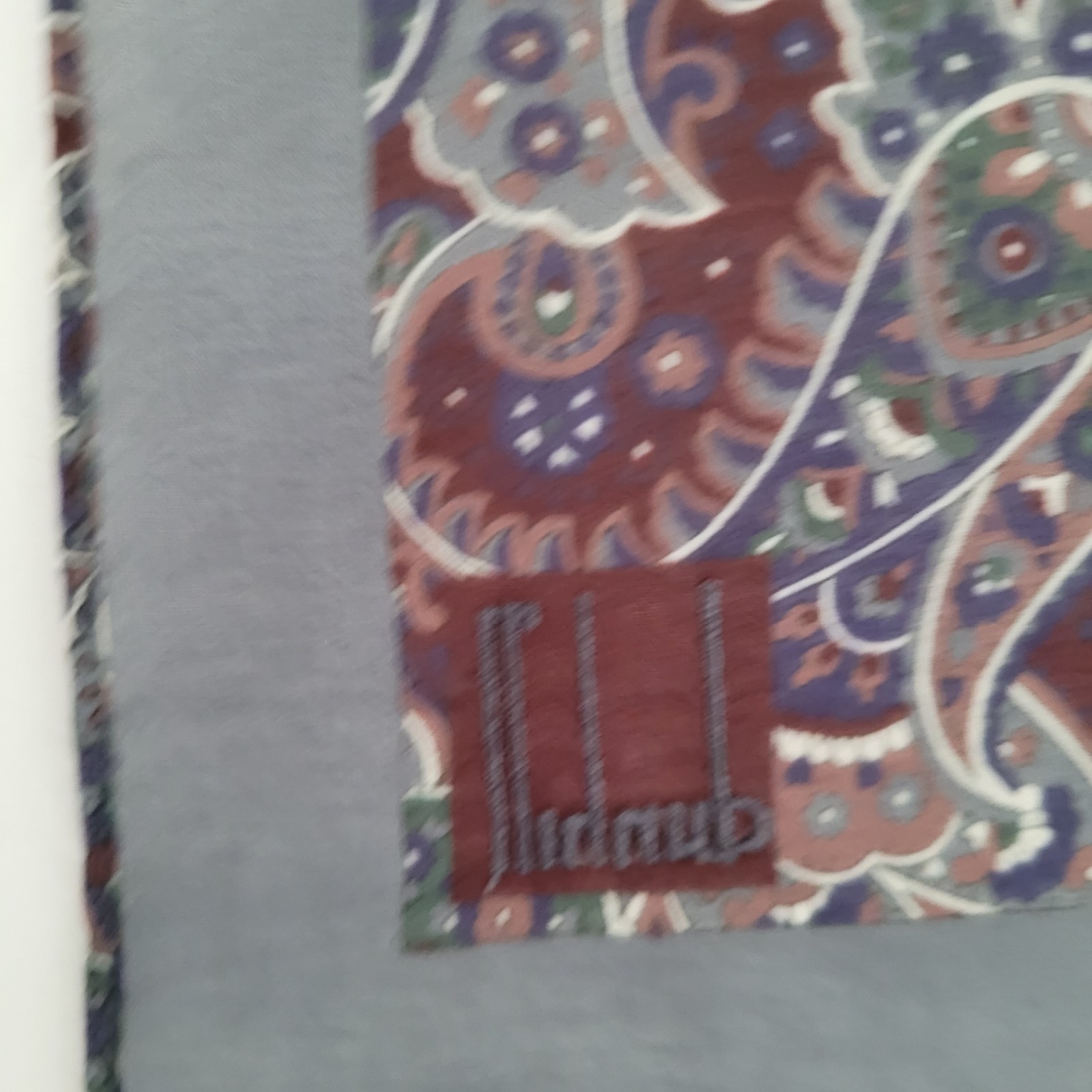 Dunhill Vintage Cotton Handkerchief Square Designer Blue Gray Paisley 18 Medium