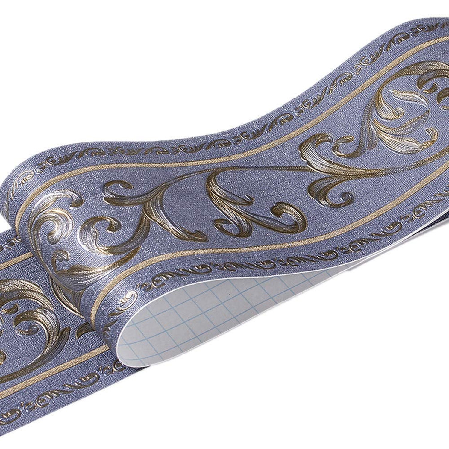 как выглядит REDODECO Navy Floral Pattern Wall Border Molding Peel Stick Wallpaper Decal f... фото