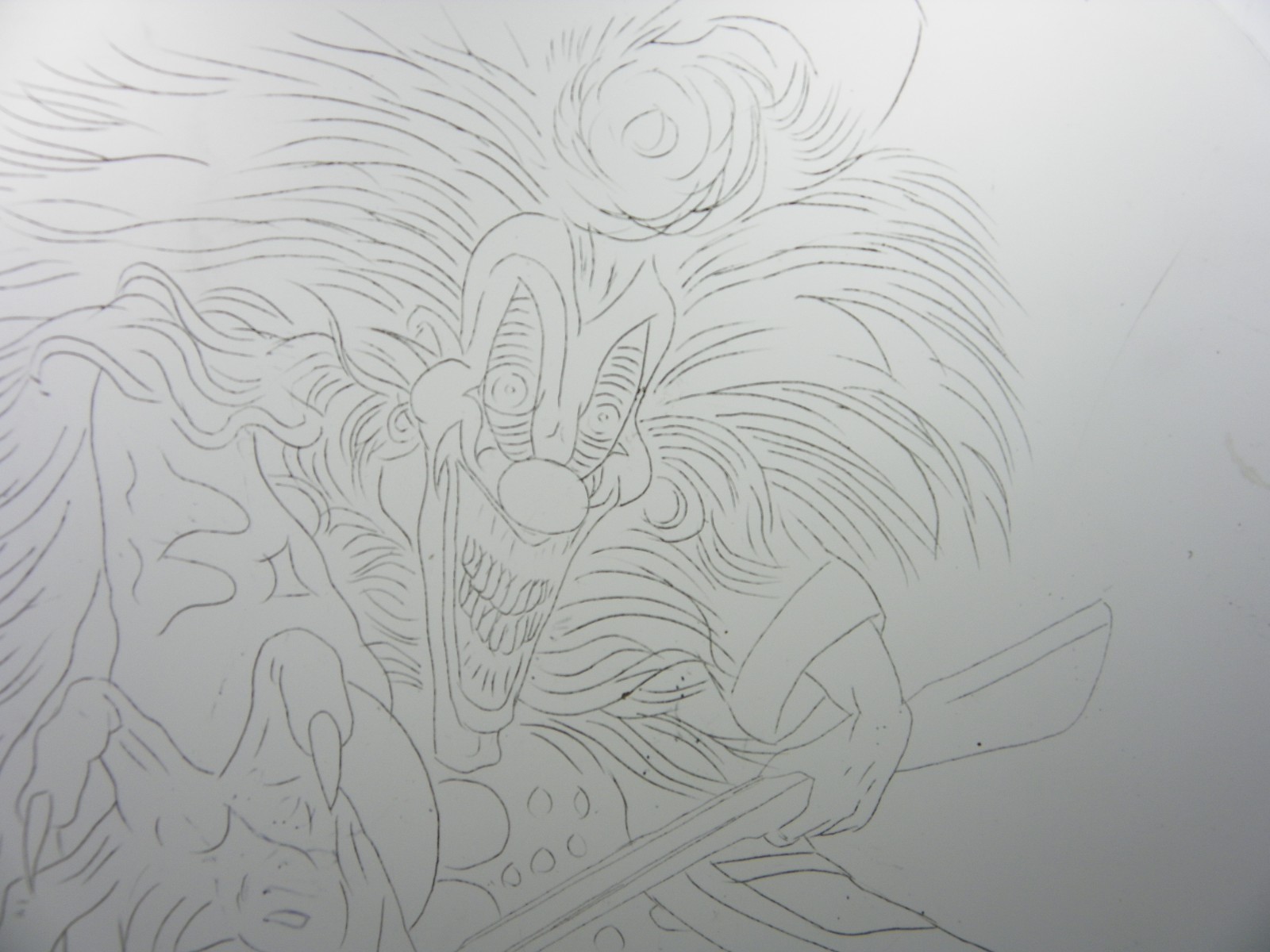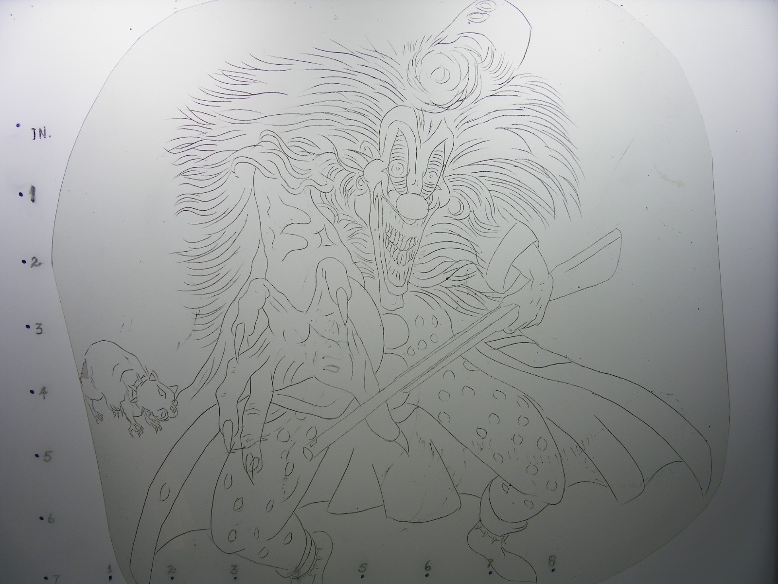 как выглядит Vintage Acetate Stencil "Clown Dangerous Toys". Tattoo stencil. фото