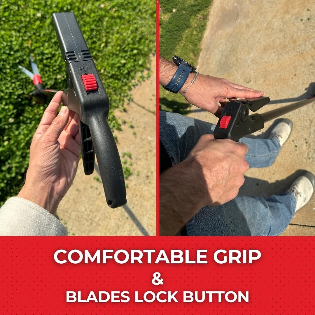 Особенности: Wheeled Support, 180° Swivel Blade, Comfortable Upright Trimming, Durable Steel Handle