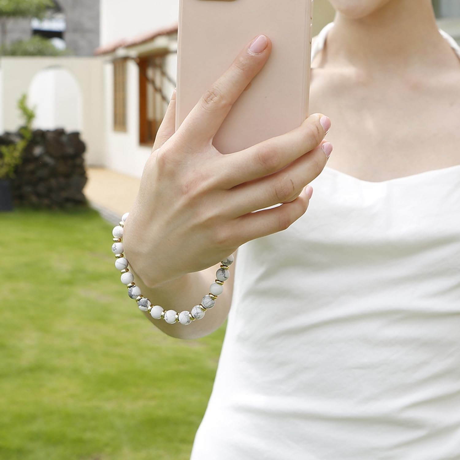 TENOC Marble Beaded Phone Wrist Strap, Cellphone Lanyard with B-marble White