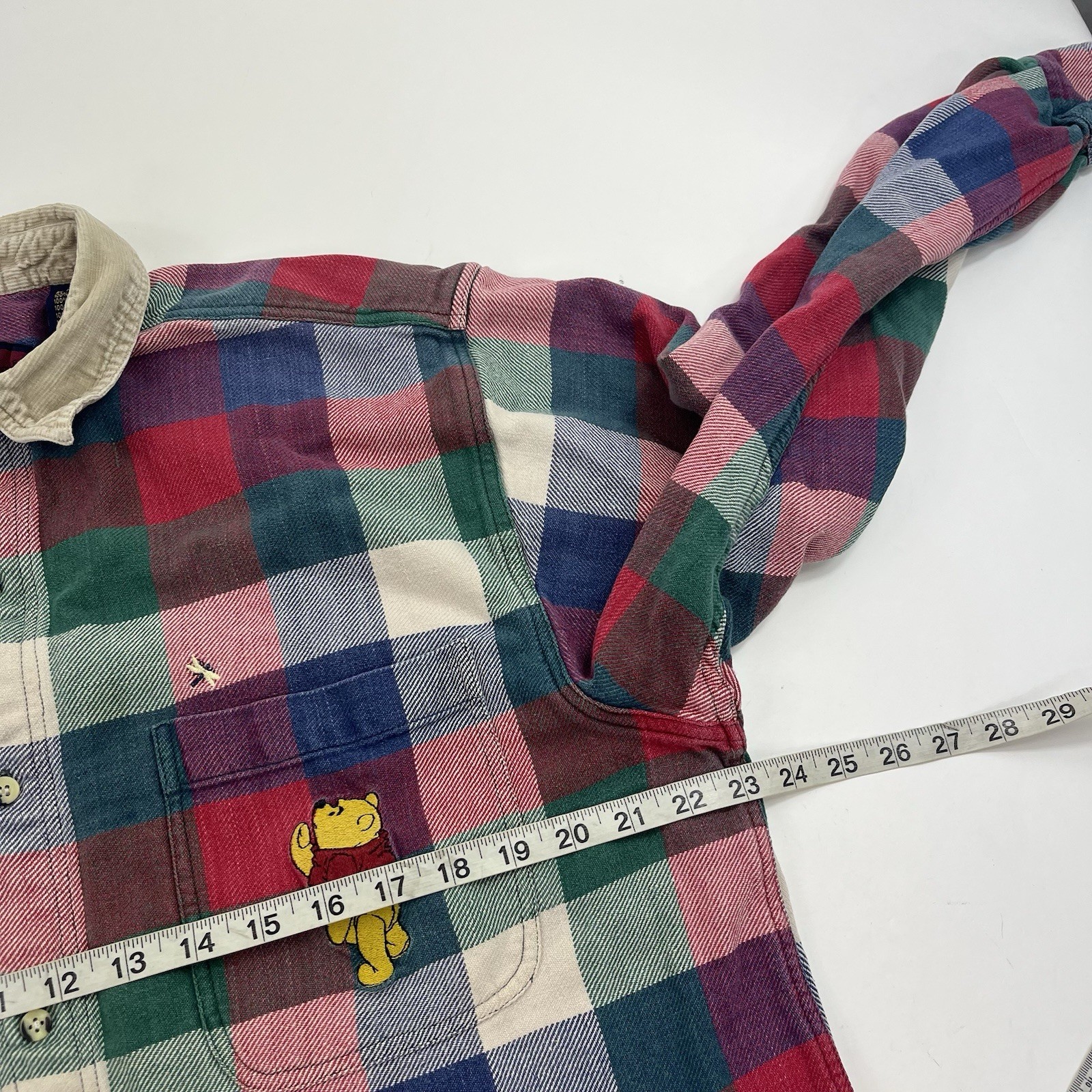 как выглядит Disney Winnie The Pooh Plaid Corduroy Collar Button Down Shirt Sz Large VINTAGE фото