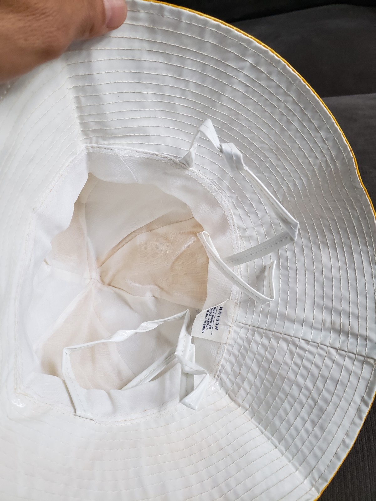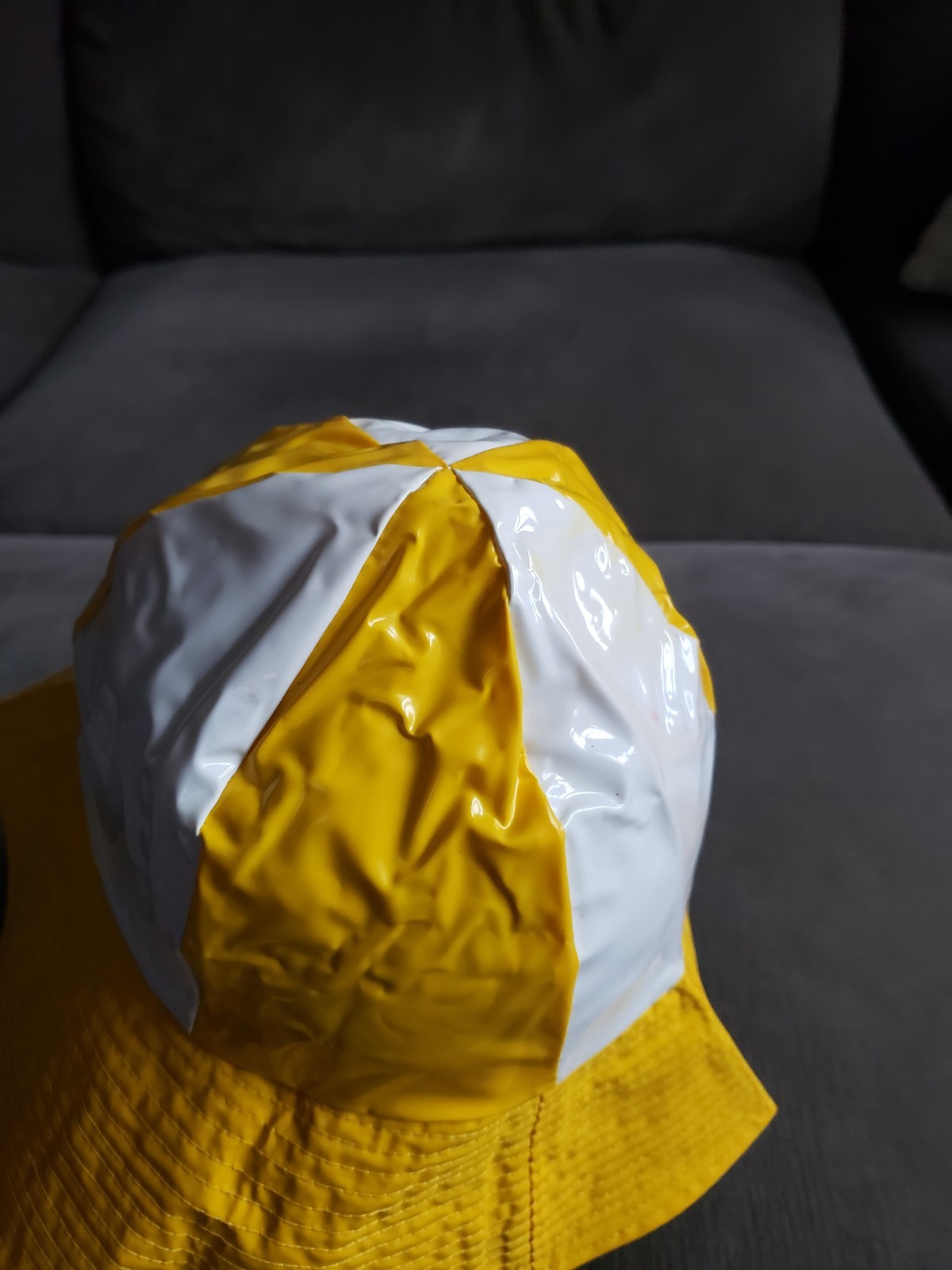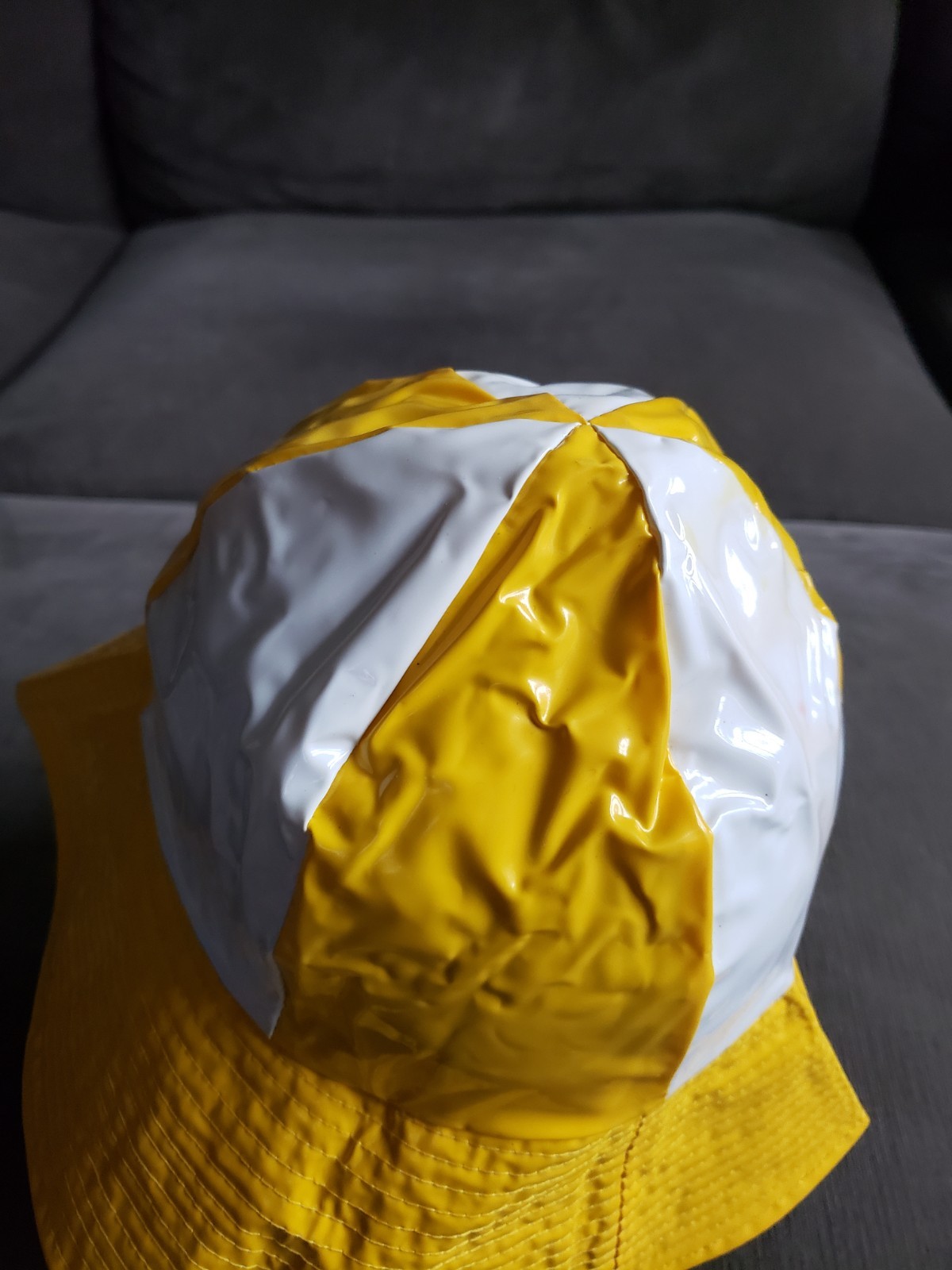 как выглядит Vintage Classic Yellow/White Striped Rain Bucket Hat - Made In British Crown... фото