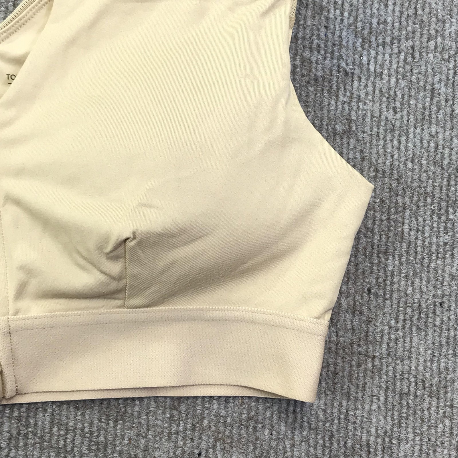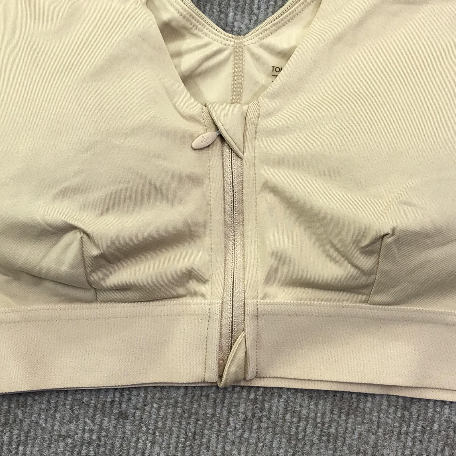 Tommie Copper Sports Bra Womens Large Beige Tan Shoulder Support Zip Front
