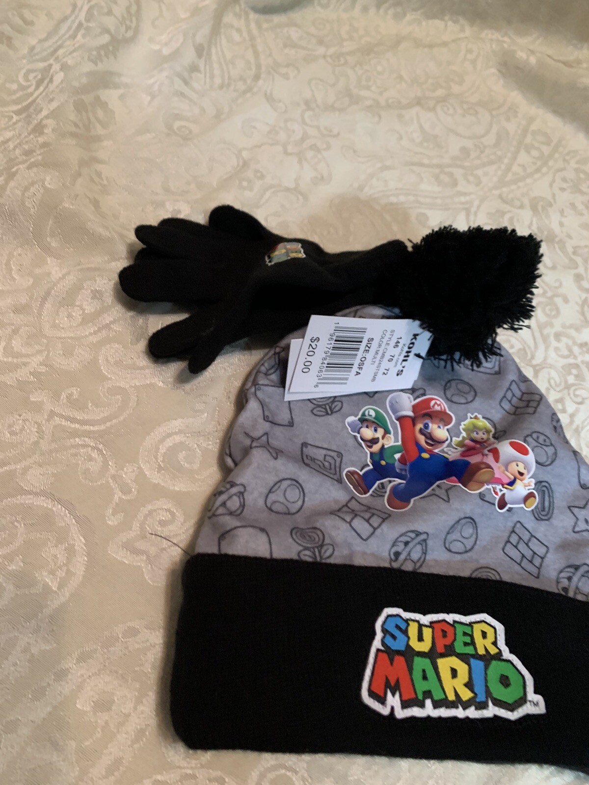 как выглядит Kids Youth Super Mario Beanie Winter Hat Gloves Set w/ Pom Pom - New One Size фото
