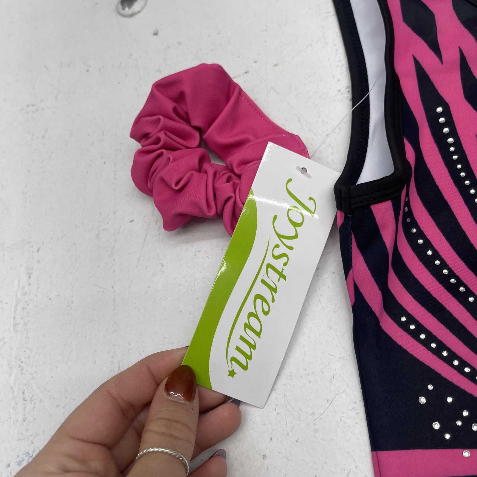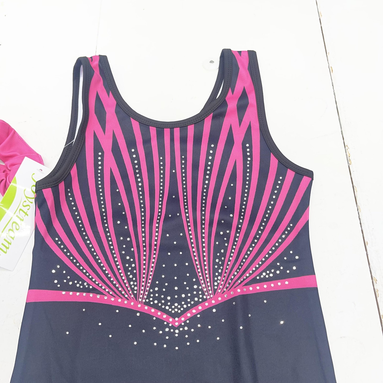 как выглядит Joystream Gymnastics Leotard Set Girls Large 8-9 Black Pink Rhinestone Shorts фото