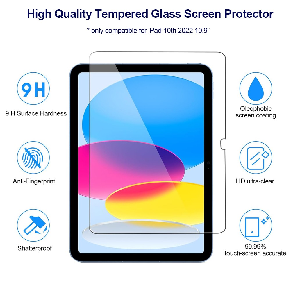 For Apple iPad 10th 2022 10.9 inch Tempered Glass Screen Protector 9H Shockproof