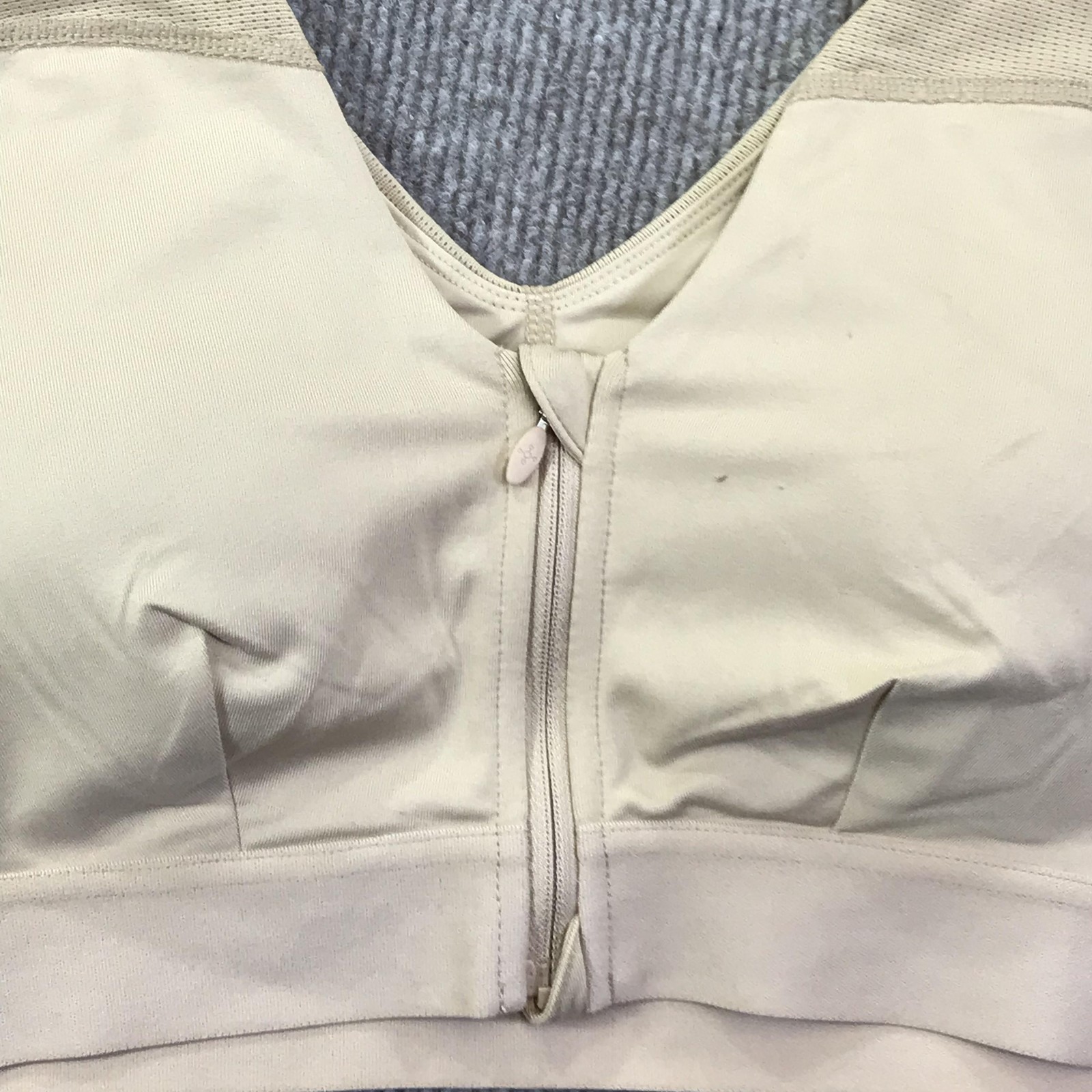 Tommie Copper Sports Bra Womens Large Beige Zip Front Shoulder Support Nude