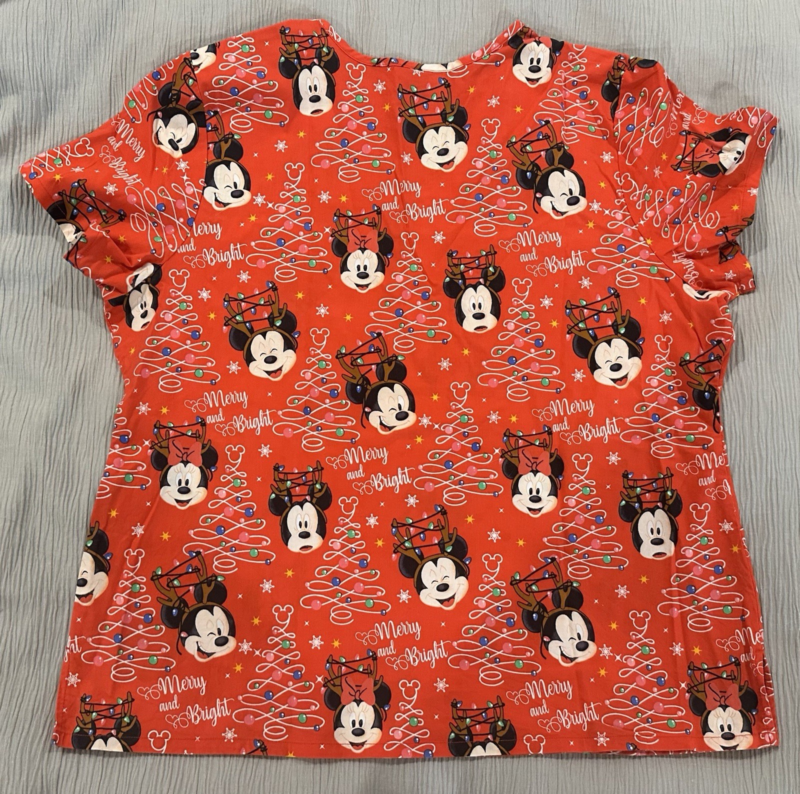 Disney Christmas Scrub Top Red Mickey Minnie Mouse XL Women s