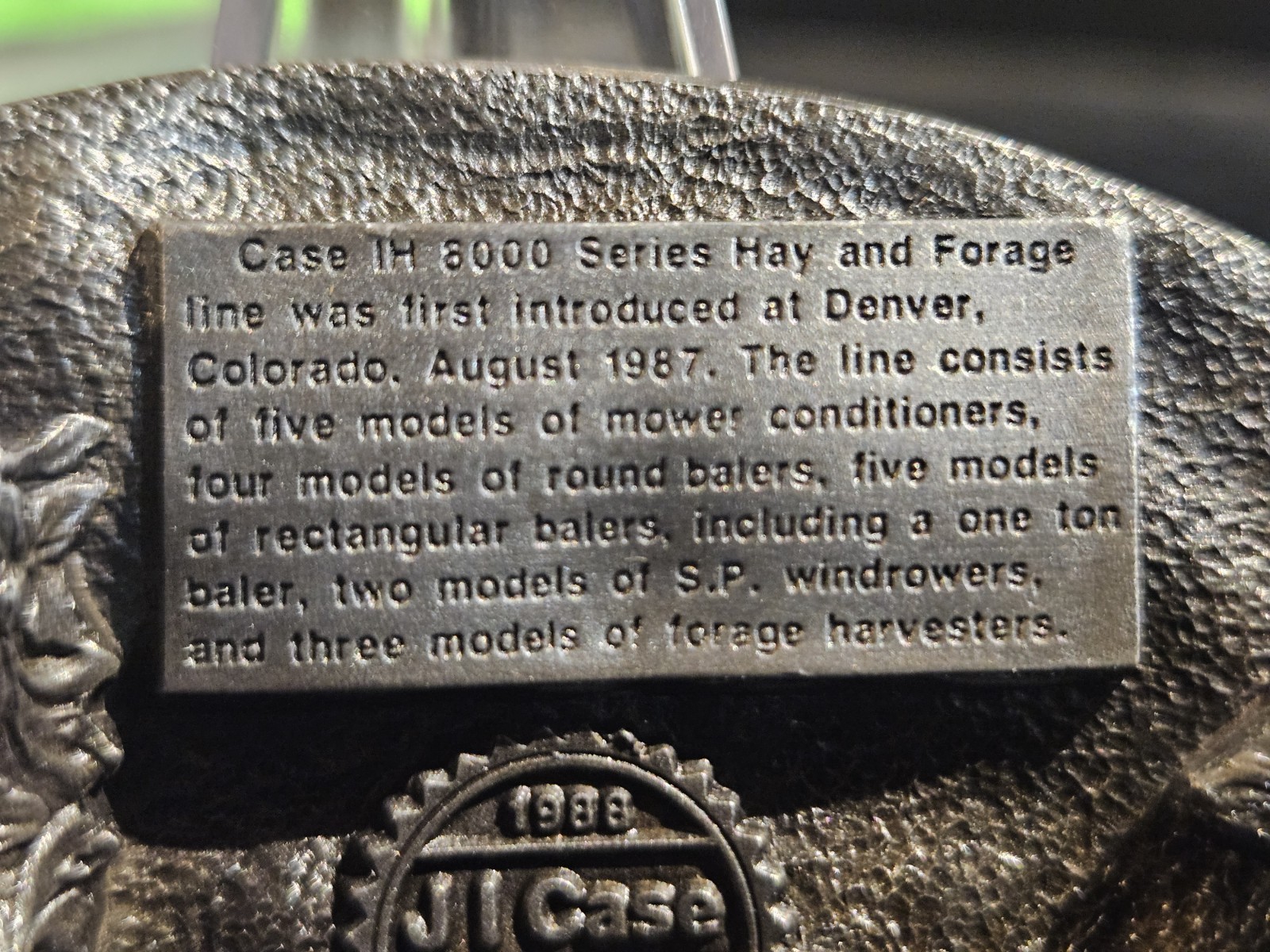 J I CASE IH 1988 8000 Series Hay Forage Equipment Belt Buckle Pewter B138