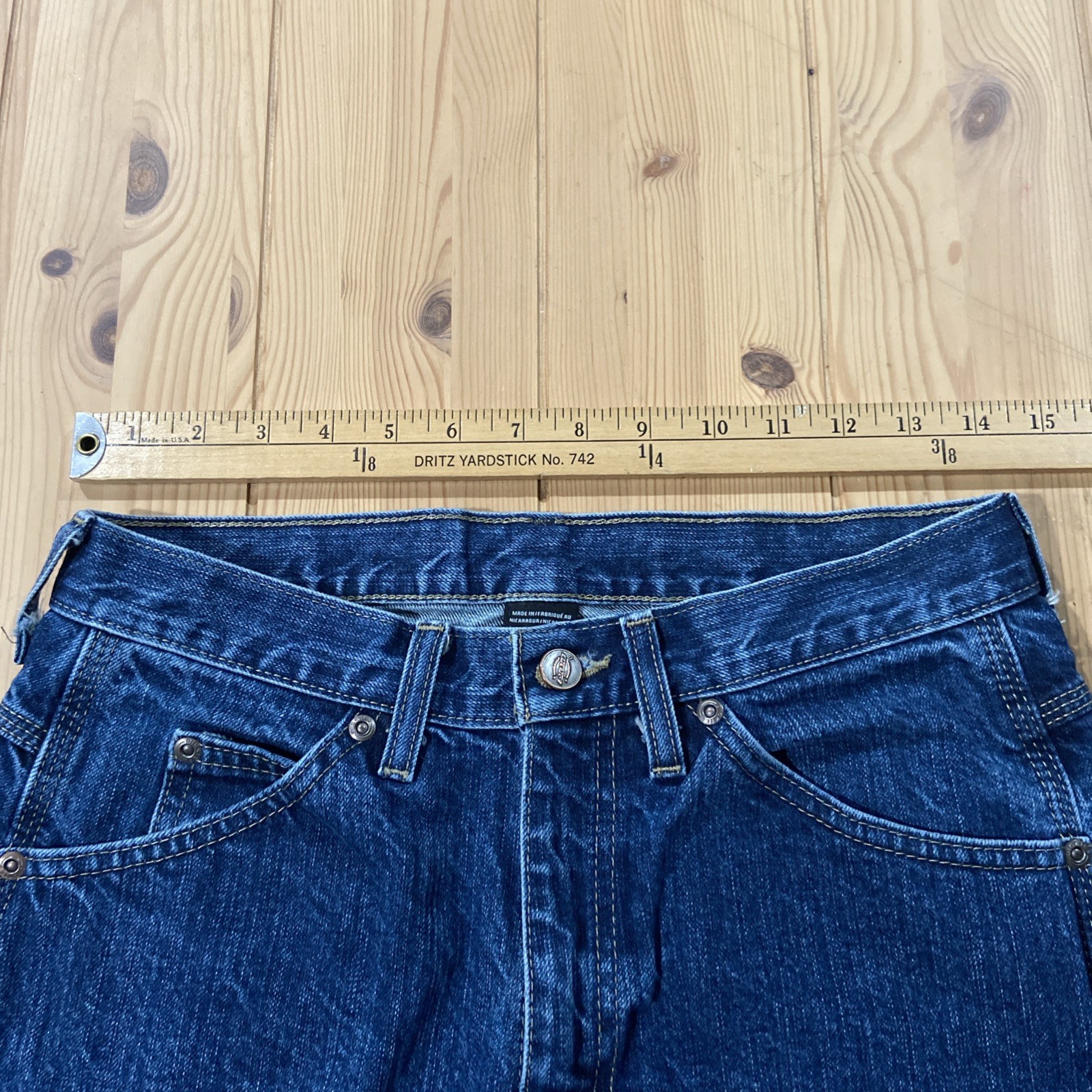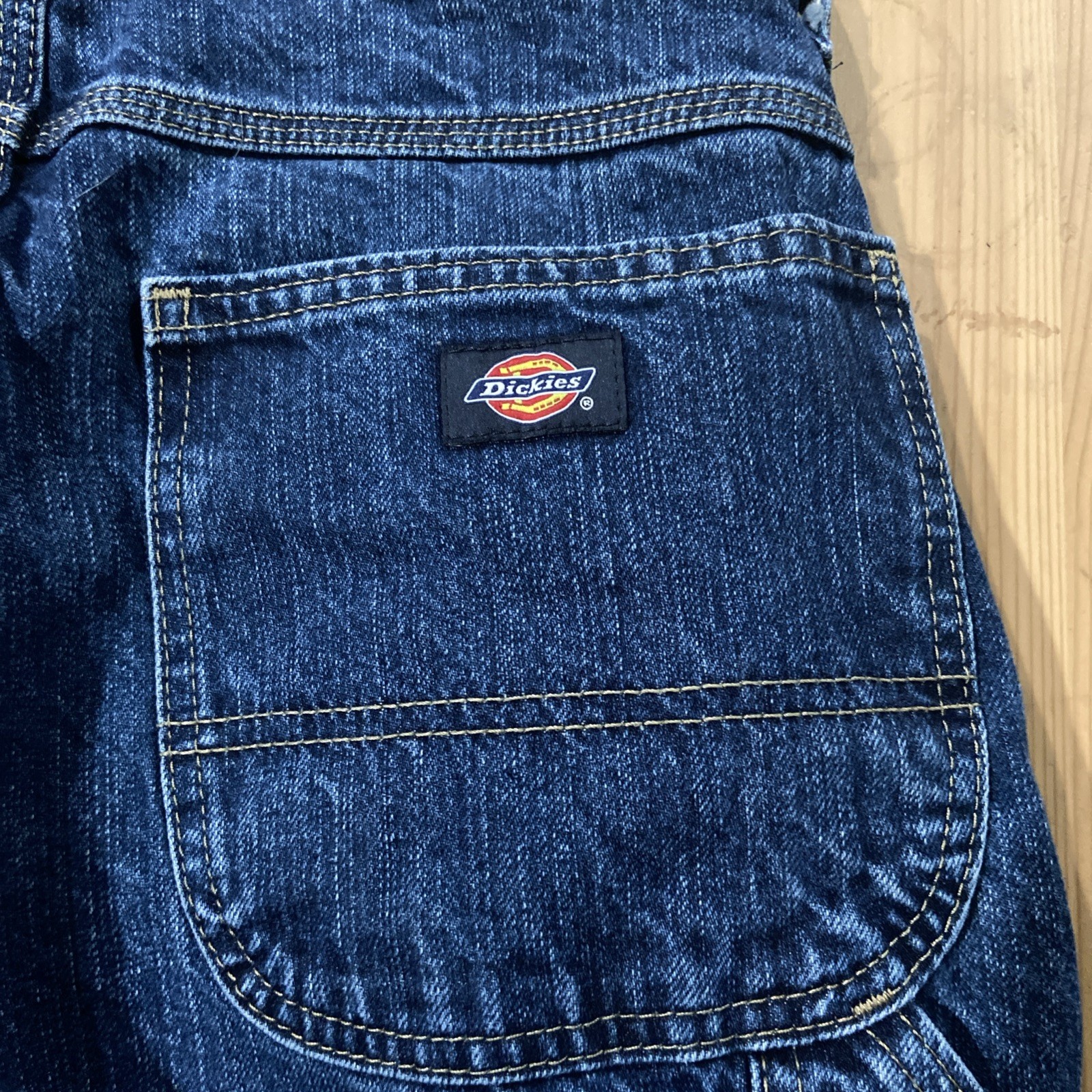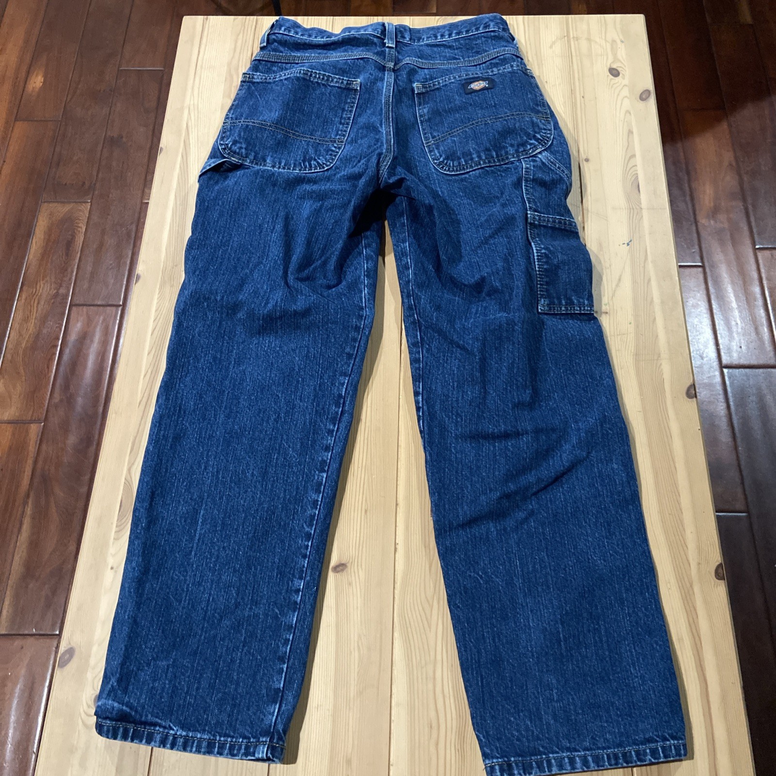 Dickies carpenter straight leg blue jeans distressed faded relaxed fit 30