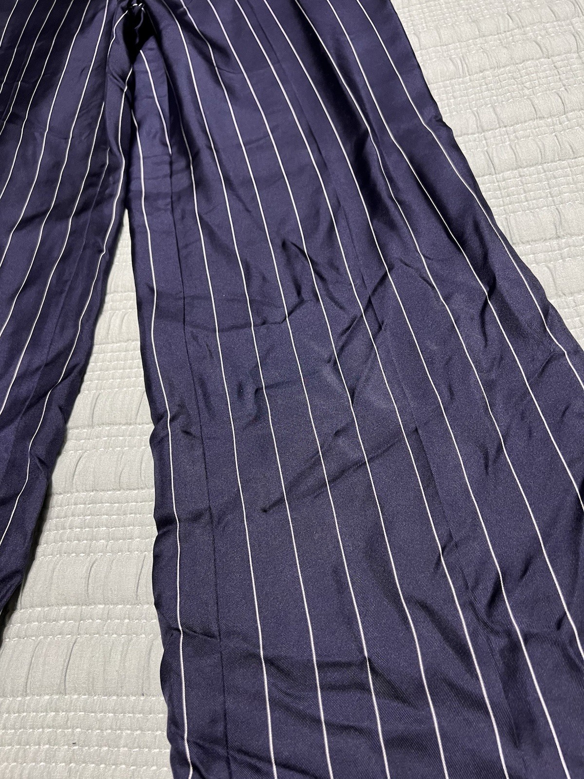 как выглядит VTG NWT Lauren Ralph Lauren Exclusive Navy Blue 100 Silk Wide Leg Trousers 8 фото