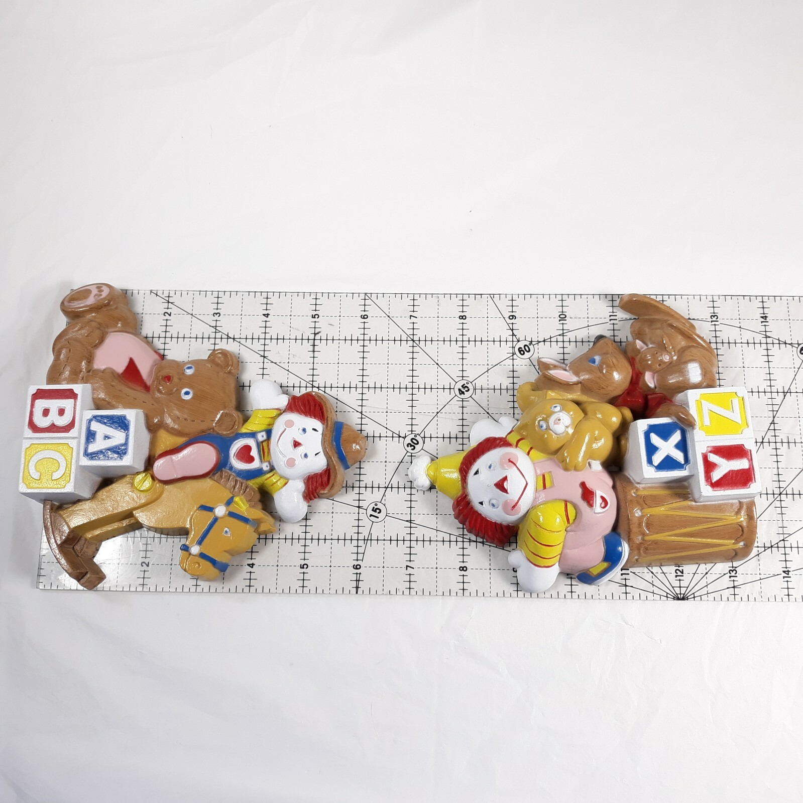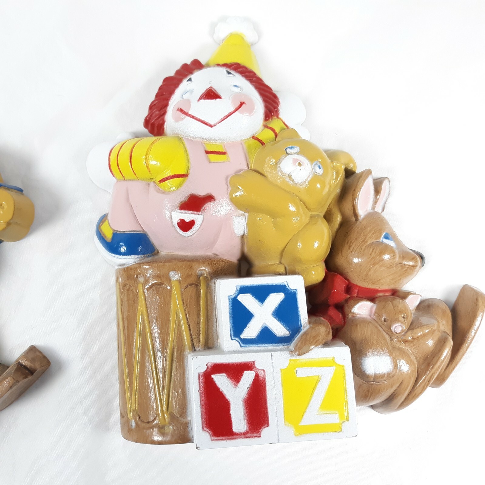 Burwood Clowns Teddy Bears Rocking Horse Blocks Vtg Plastic Wall Hangings Decor