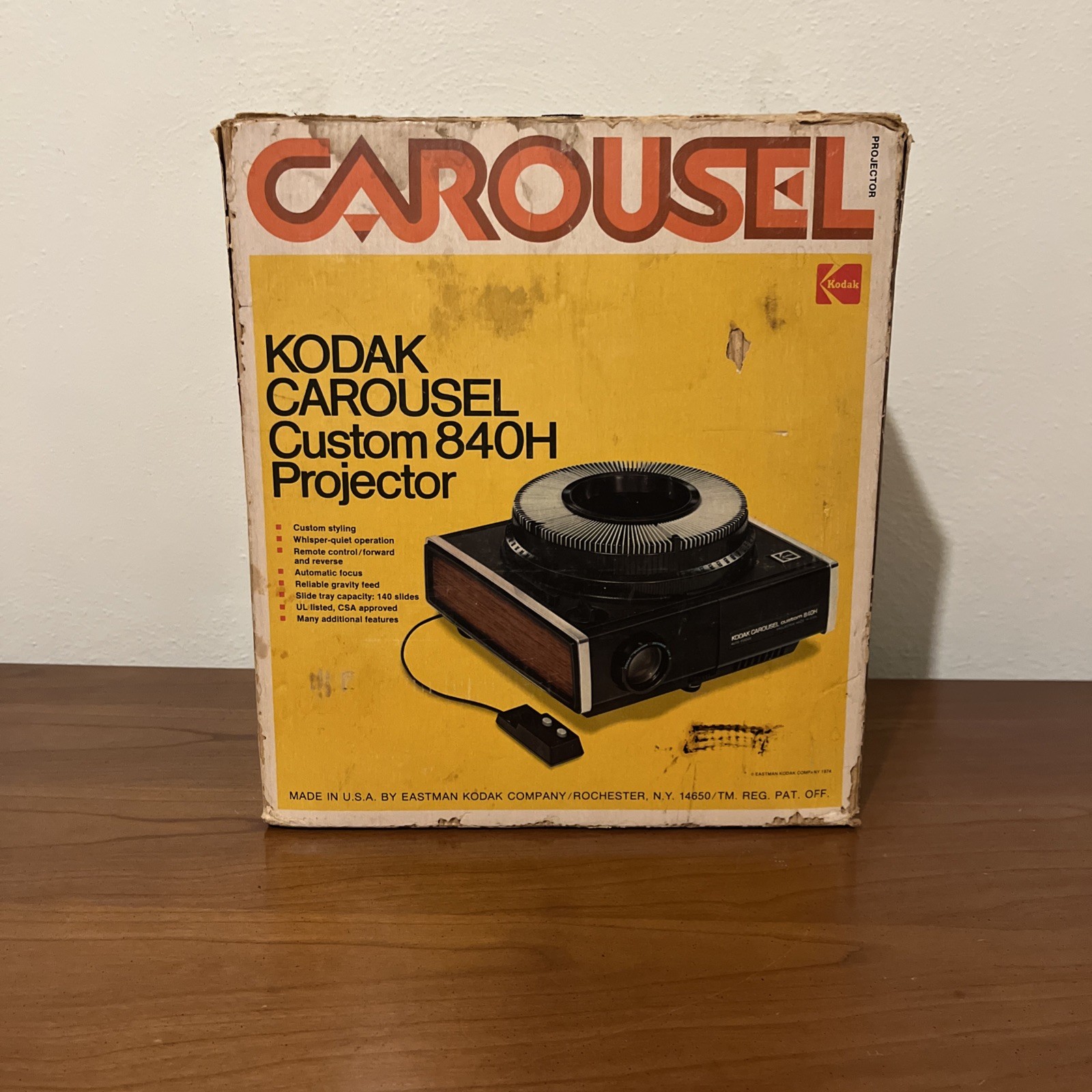 как выглядит Vintage Kodak Carousel Custom 840H Slide Projector With Remote Box Turns On фото