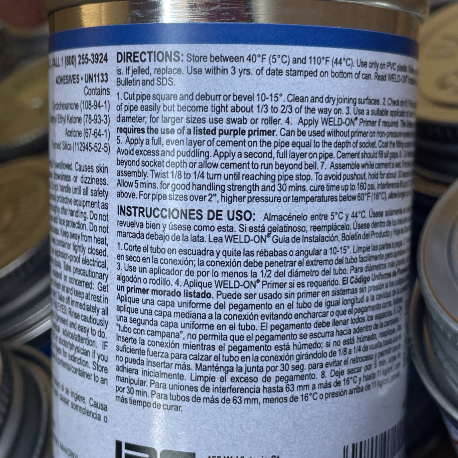 24 Weld-On Weld On 781 PVC Cement 14009 Clear Medium 1/4 Pt 4oz