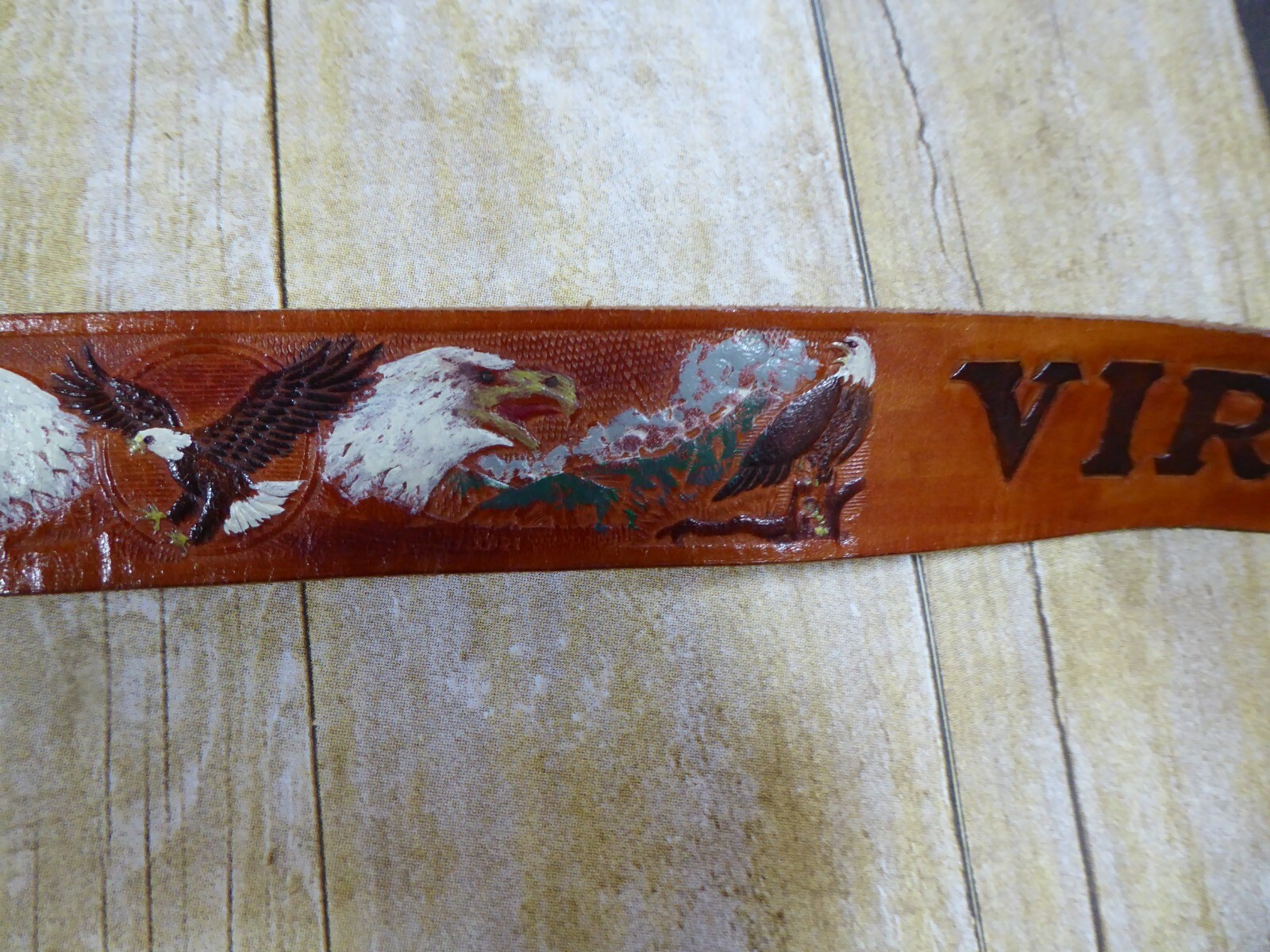 Hand Tooled Leather Belt Eagle Brass Buckle Virginia Cowgirl Multicolor Size 36