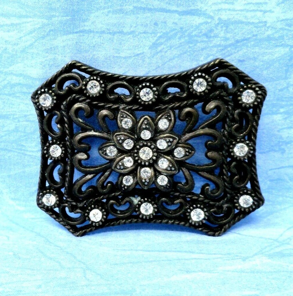Western Floral Belt Buckle Open Work Rhinestones Coastal Cowgirl Vtg 90s .DBD271
