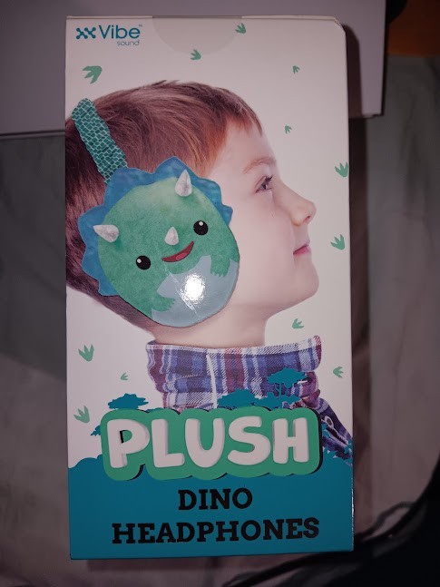 New In Box Vibe Kids Plush Dinosaur Headphones, 3.5mm Jack Comfort Xmas Gift