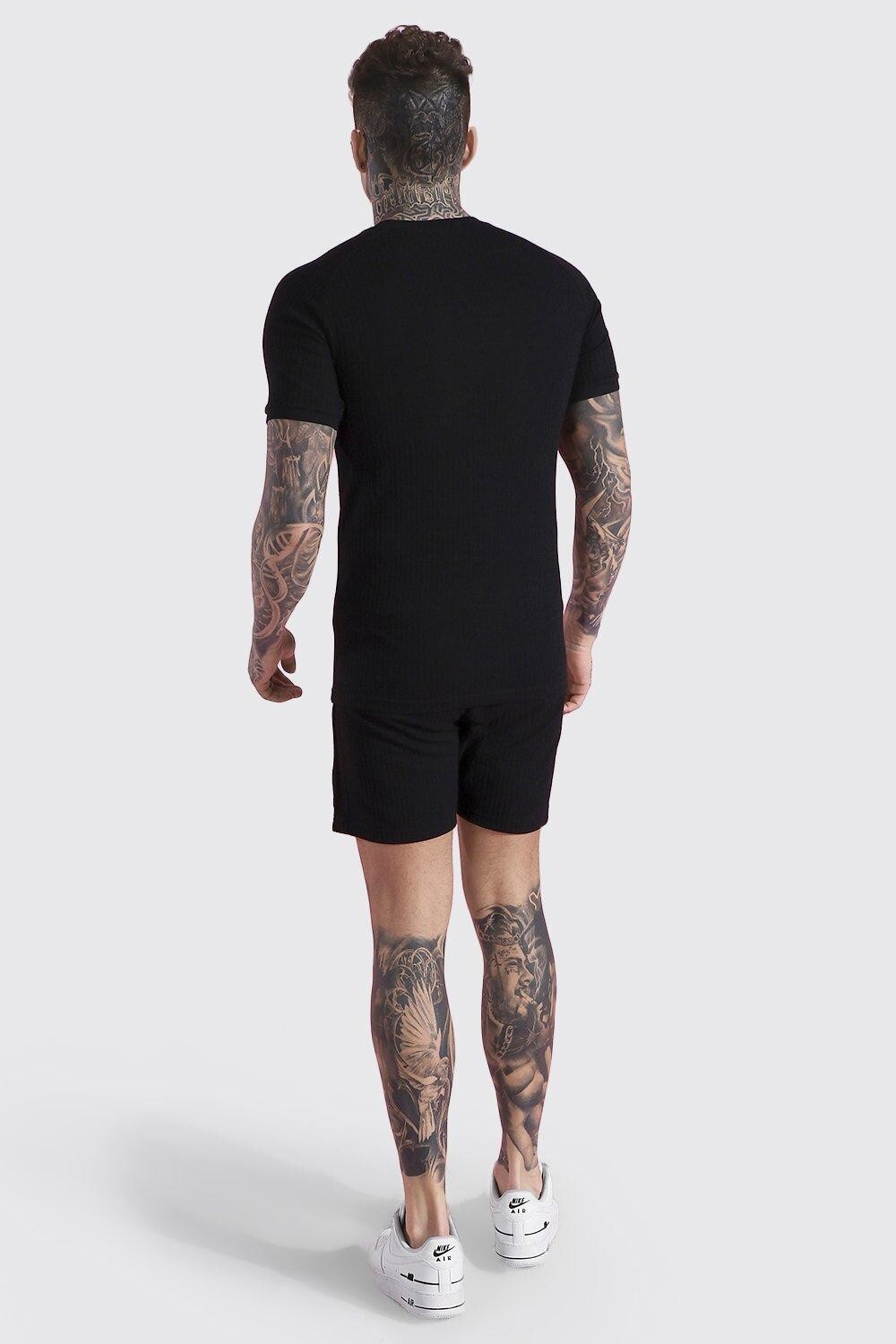 Boohoo Man Muscle Fit Jacquard T-Shirt and Short Set, Black, Size Small