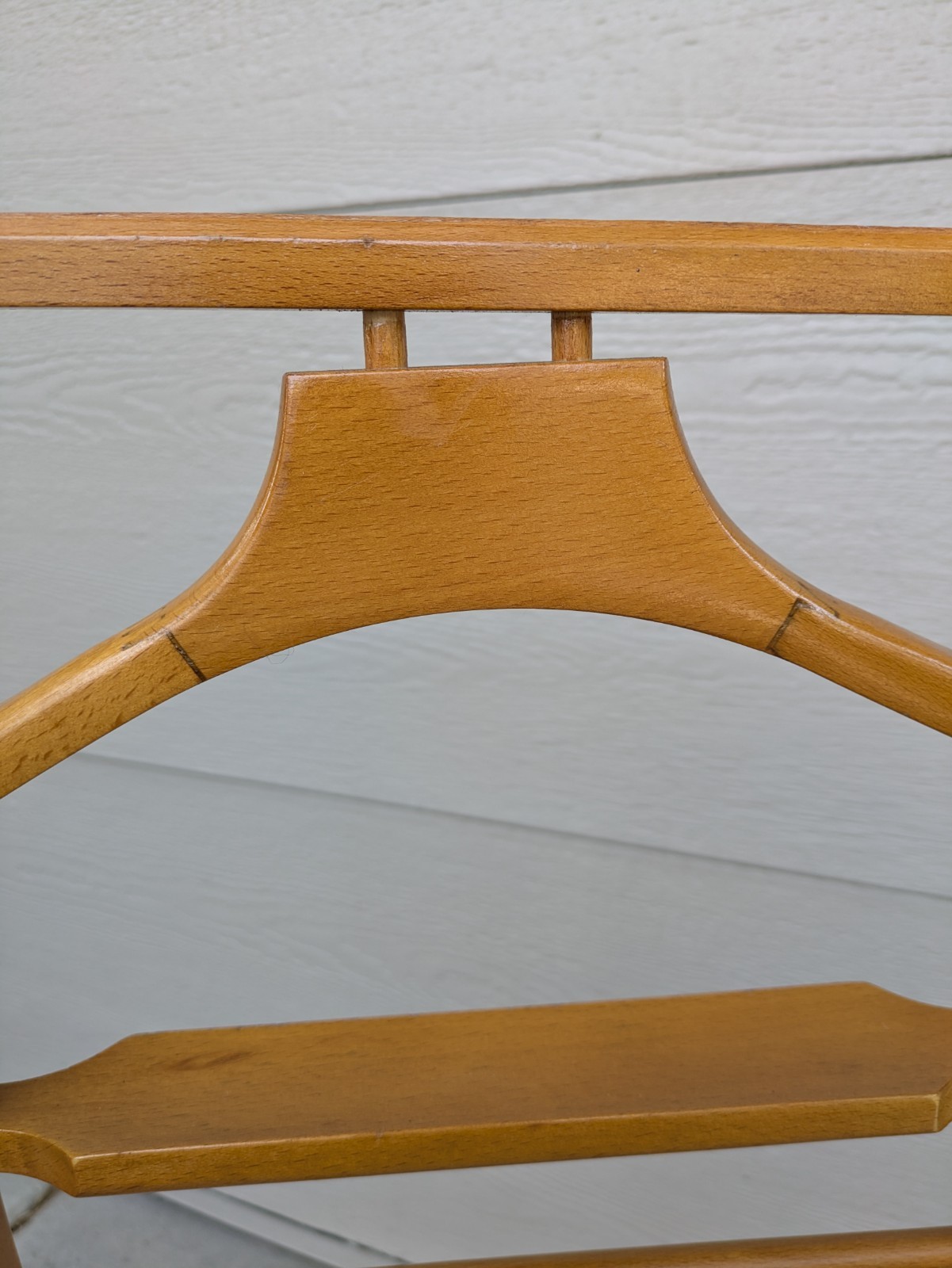 как выглядит Vintage MCM Wood Gentlemans Butler Valet Stand Clothes Suit Hanger Rack M92 фото