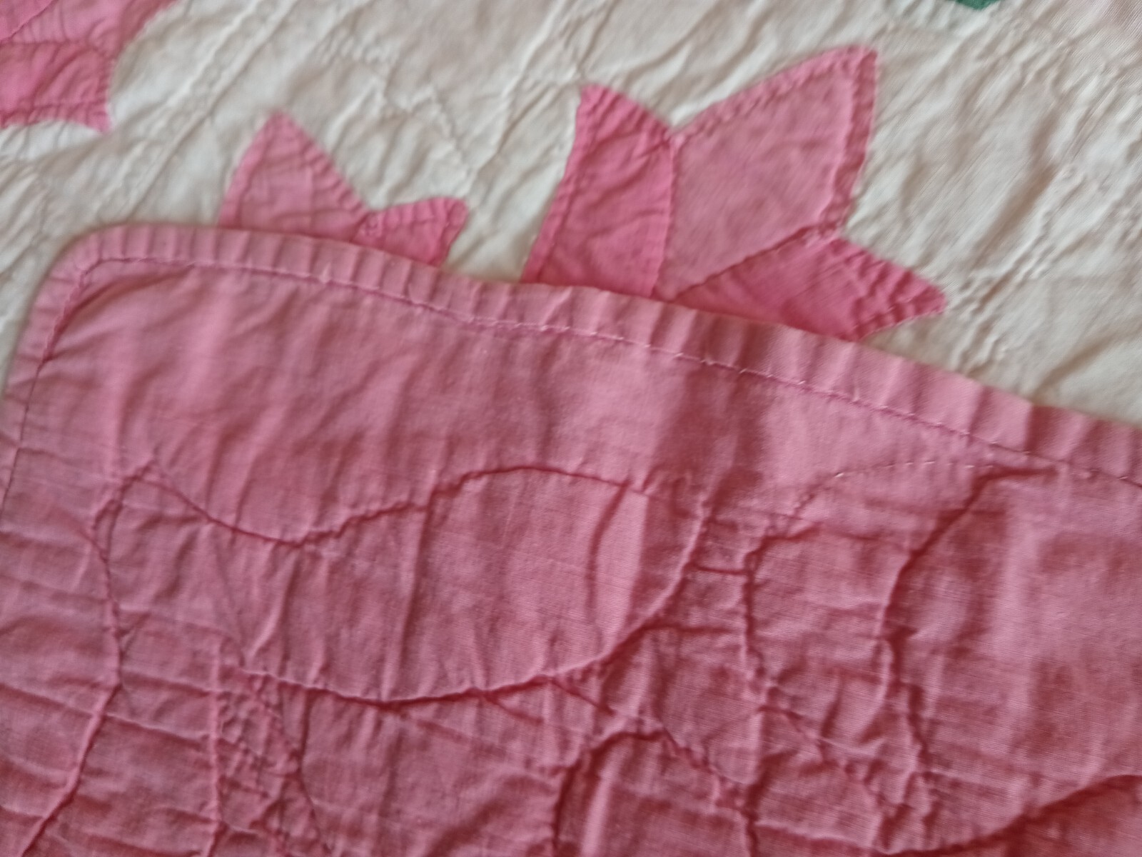 как выглядит Vintage Hand Appliqued/Hand Quilted Tulip Quilt - 78" x 86" фото