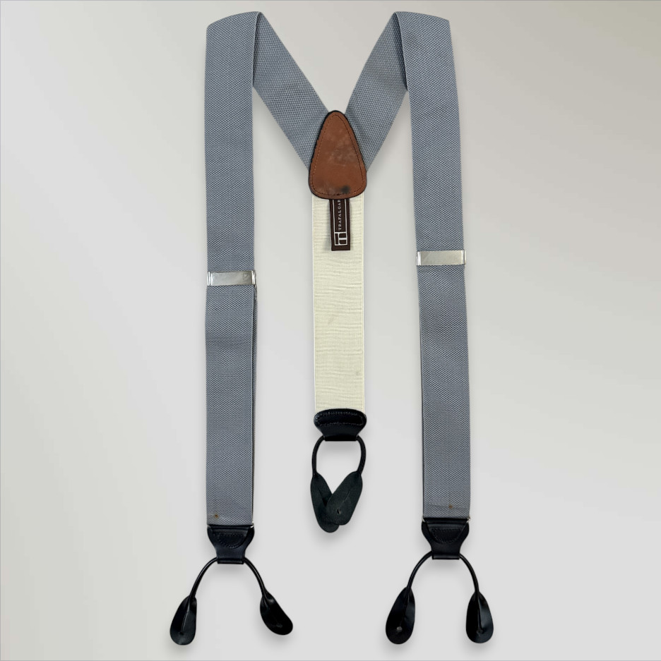 TRAFALGAR Gray/Blue Mens Suspenders Leather Button Adjustable Braces Made In USA