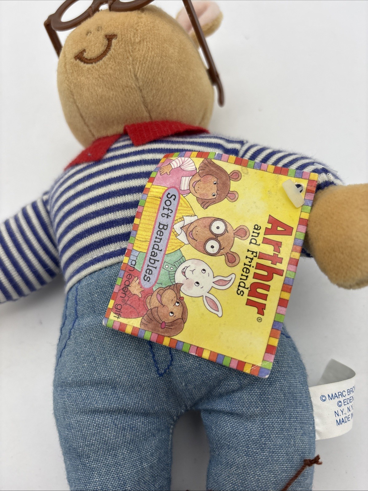 Eden Marc Brown Arthur Plush Doll Toy Blue Striped Shirt 9.5 Vintage 1998 Nwt