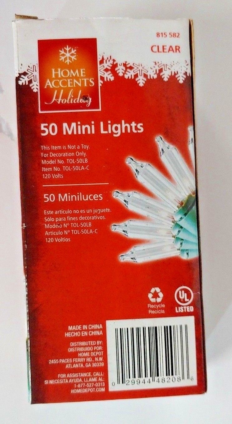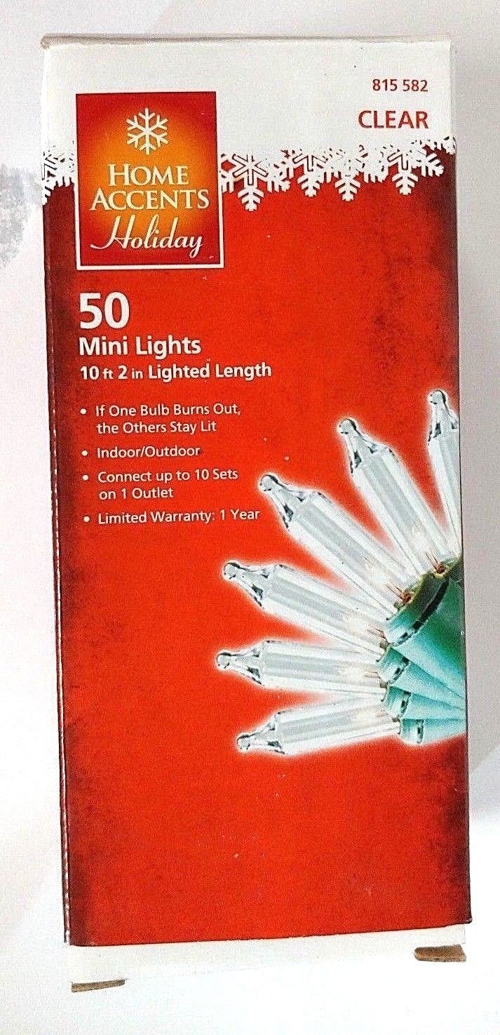 Home Accents Holiday Christmas 50 Mini Lights Clear String Green Wire 10 ft 2 in