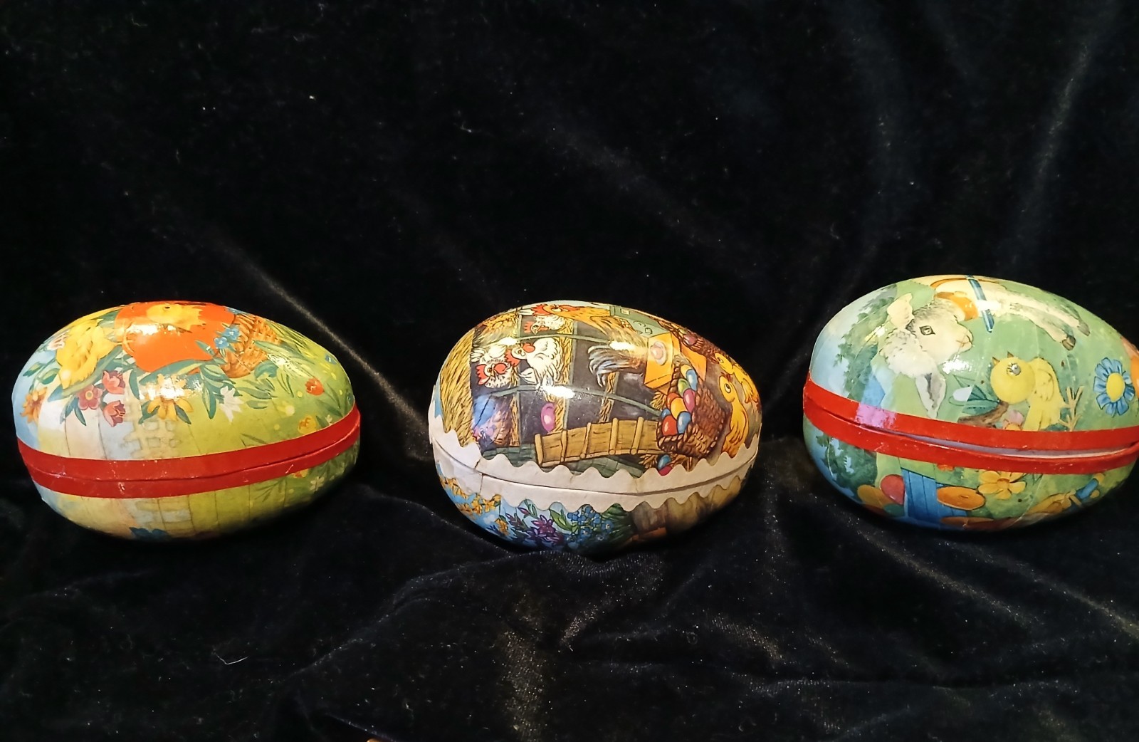 LOT OF 3 Vintage German Paper Mache Easter Egg Candy Containers 3-1/4"