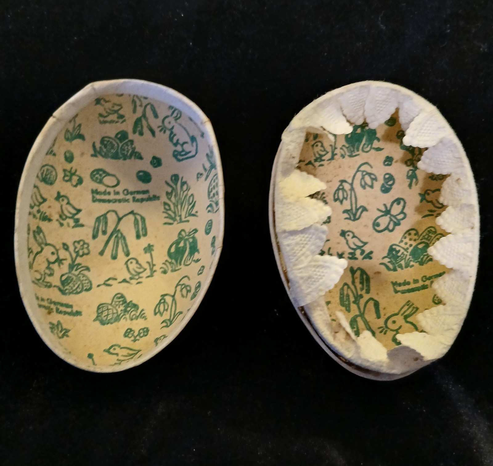 LOT OF 3 Vintage German Paper Mache Easter Egg Candy Containers 3-1/4