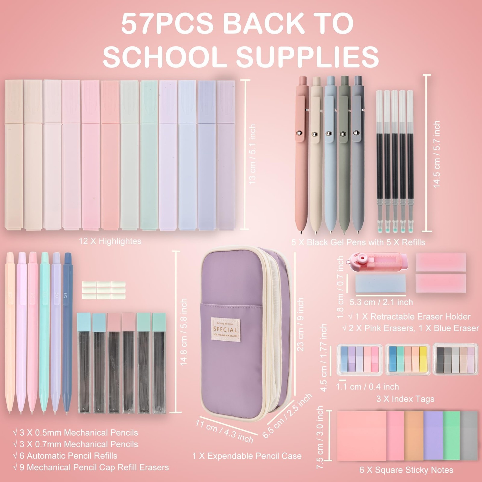 Aesthetic School Supplies with Pencil Pouch - 57 Pcs Cute College Essentials ...