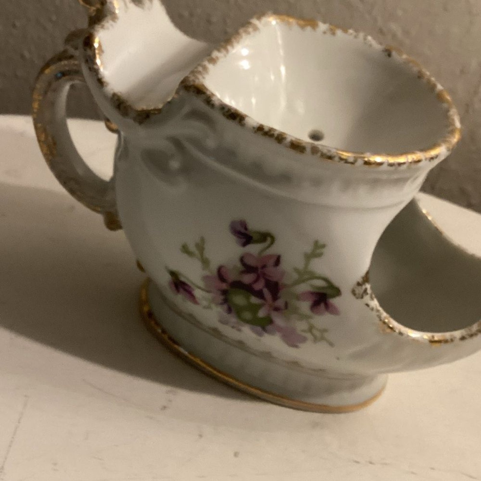 Vtg Floral Porcelain shaving scuttle mug cup with Purple Flowers