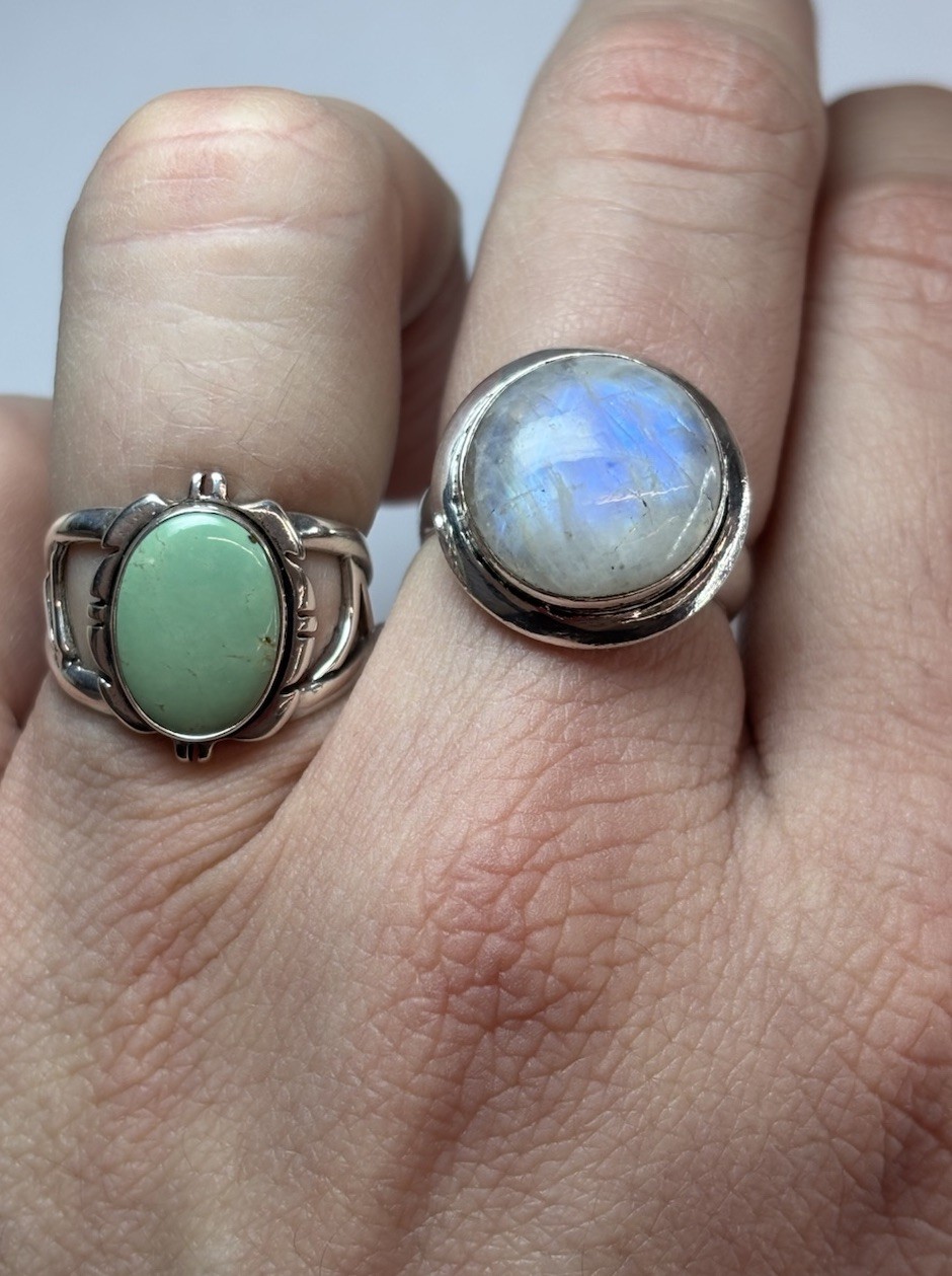 как выглядит Vintage Moonstone 925 Sterling Silver Moon Ring Size 9 фото
