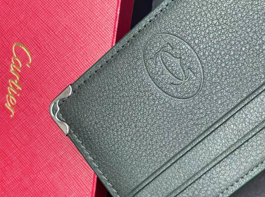 как выглядит Authentic Cartier Must Green Leather Double Card Holder Wallet NIB Gift Luxury фото
