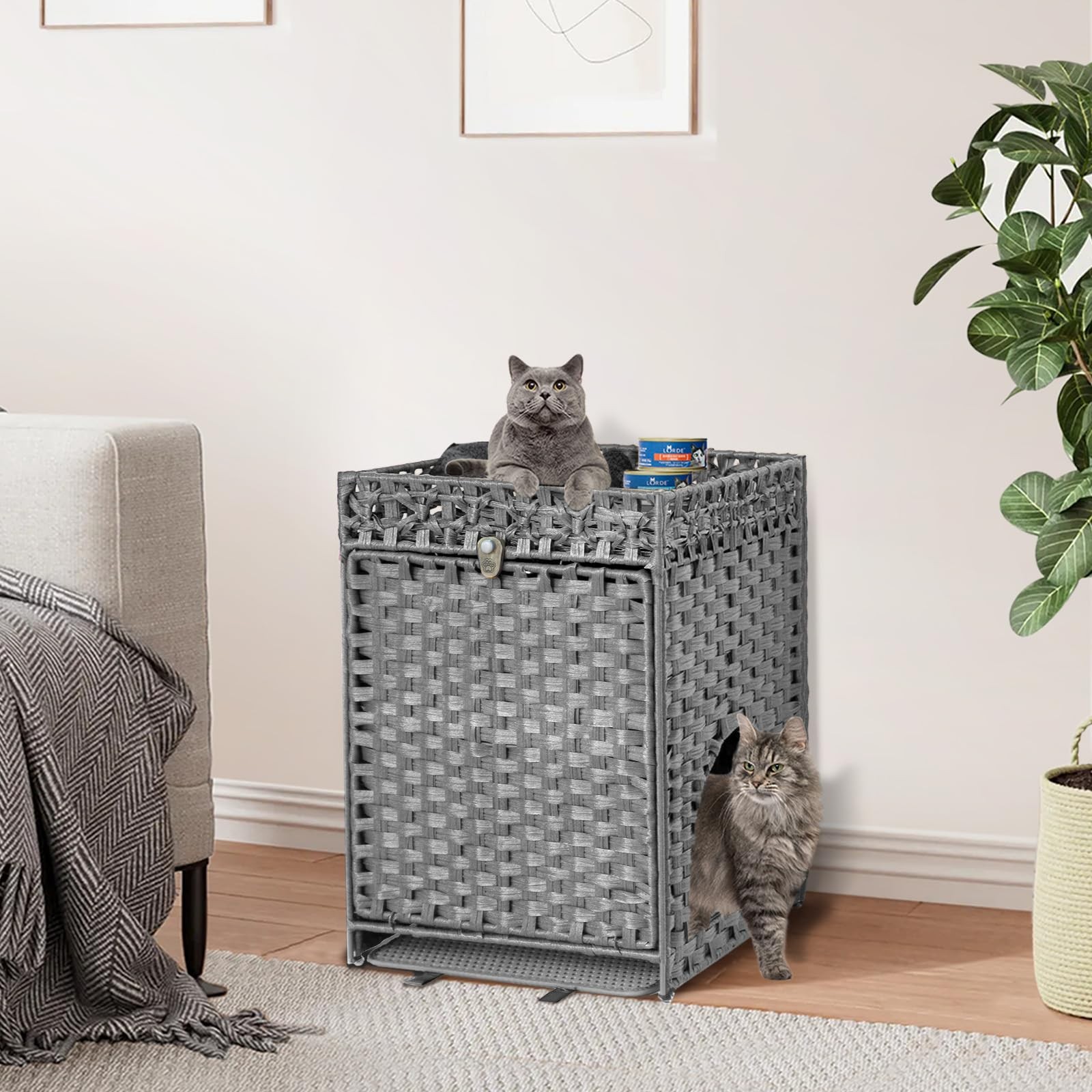 Handwoven Rattan Cat Litter Enclosure Furniture - Indoor Pet House with Door ...