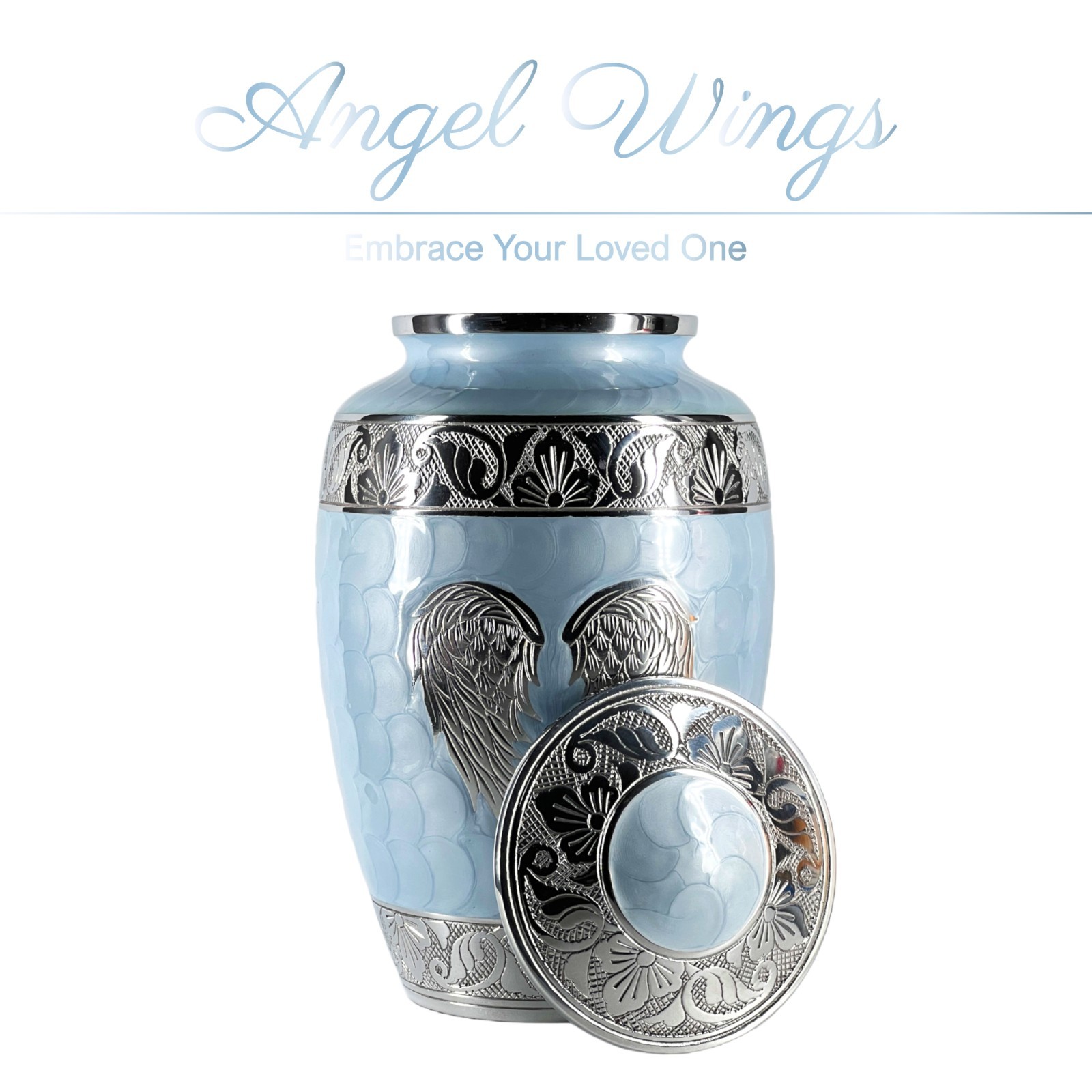 • Large Sky Blue Angel Wings Cremation Urn: Large Memorial Urn for Ashes 200 Lbs