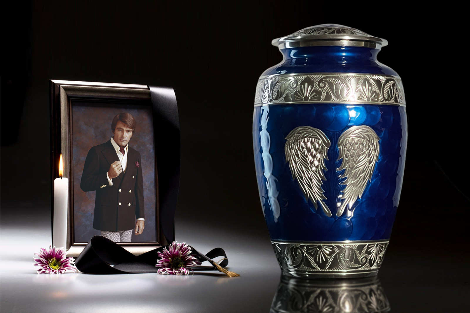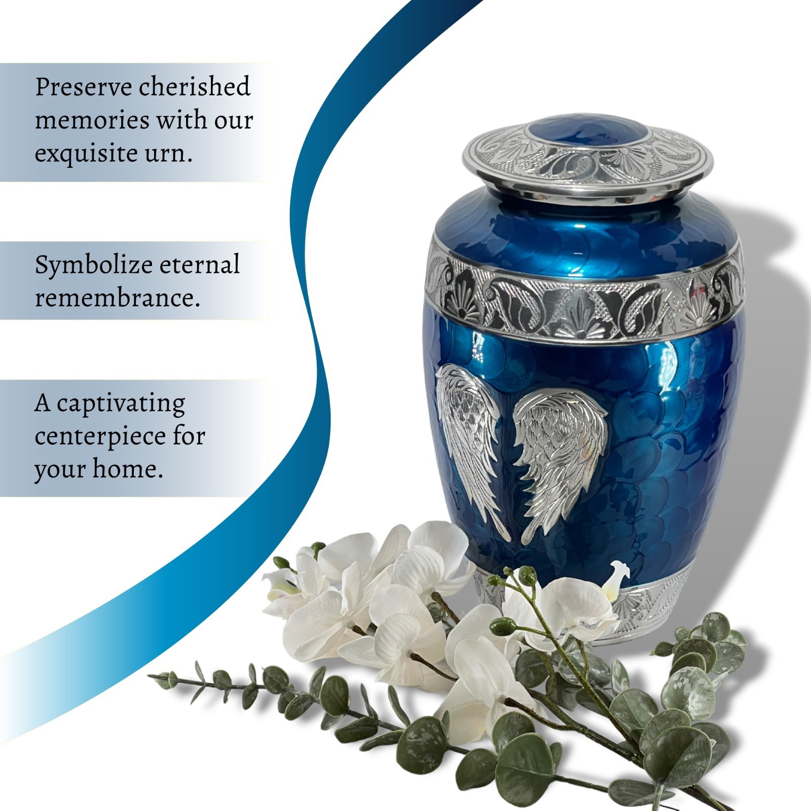 Navy Blue Angel Wings Cremation Urn: Large Memorial Urn for Ashes 200 Lbs