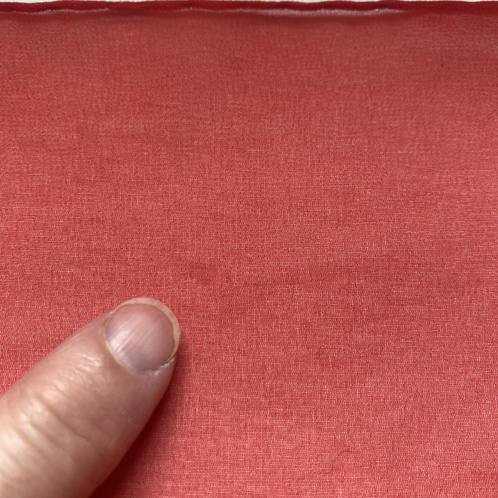 Vintage Sally Gee Red Chiffon Hand Rolled A-Tell Scarf, Japan